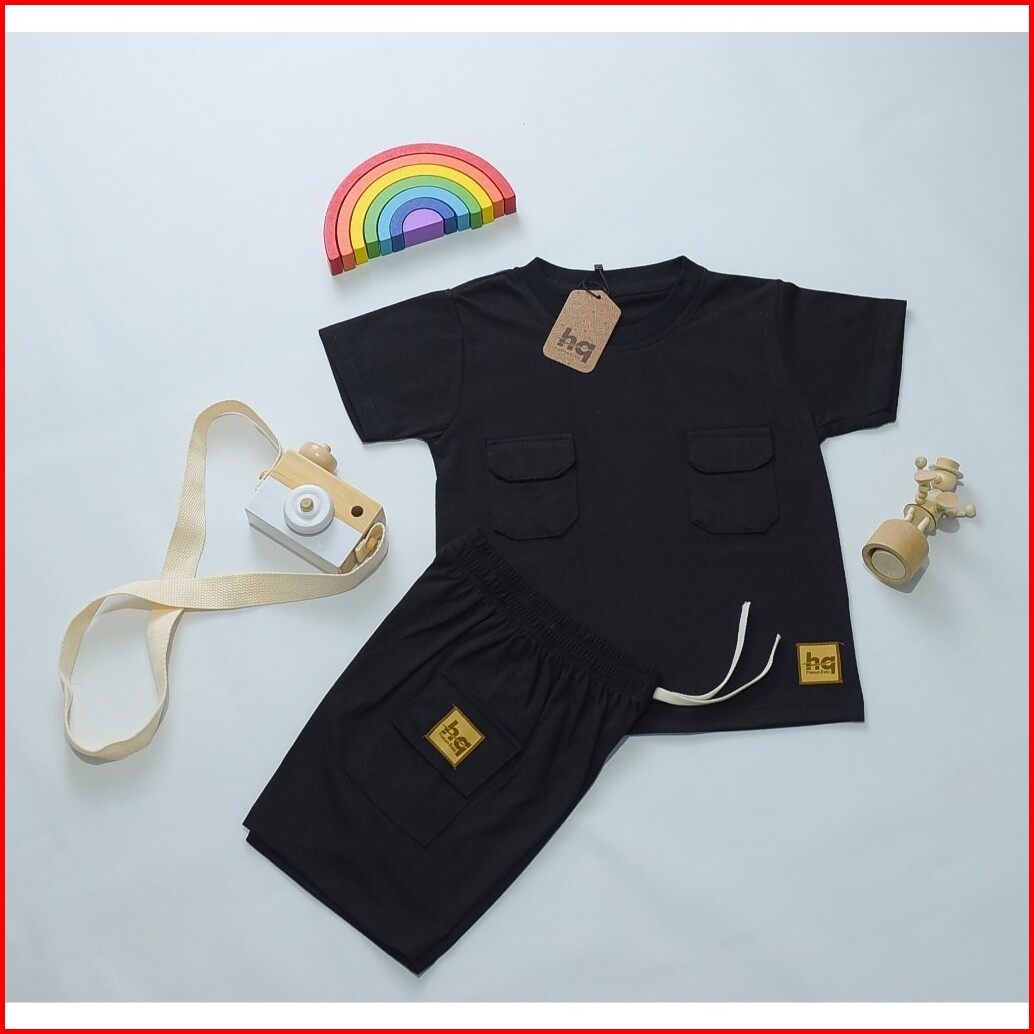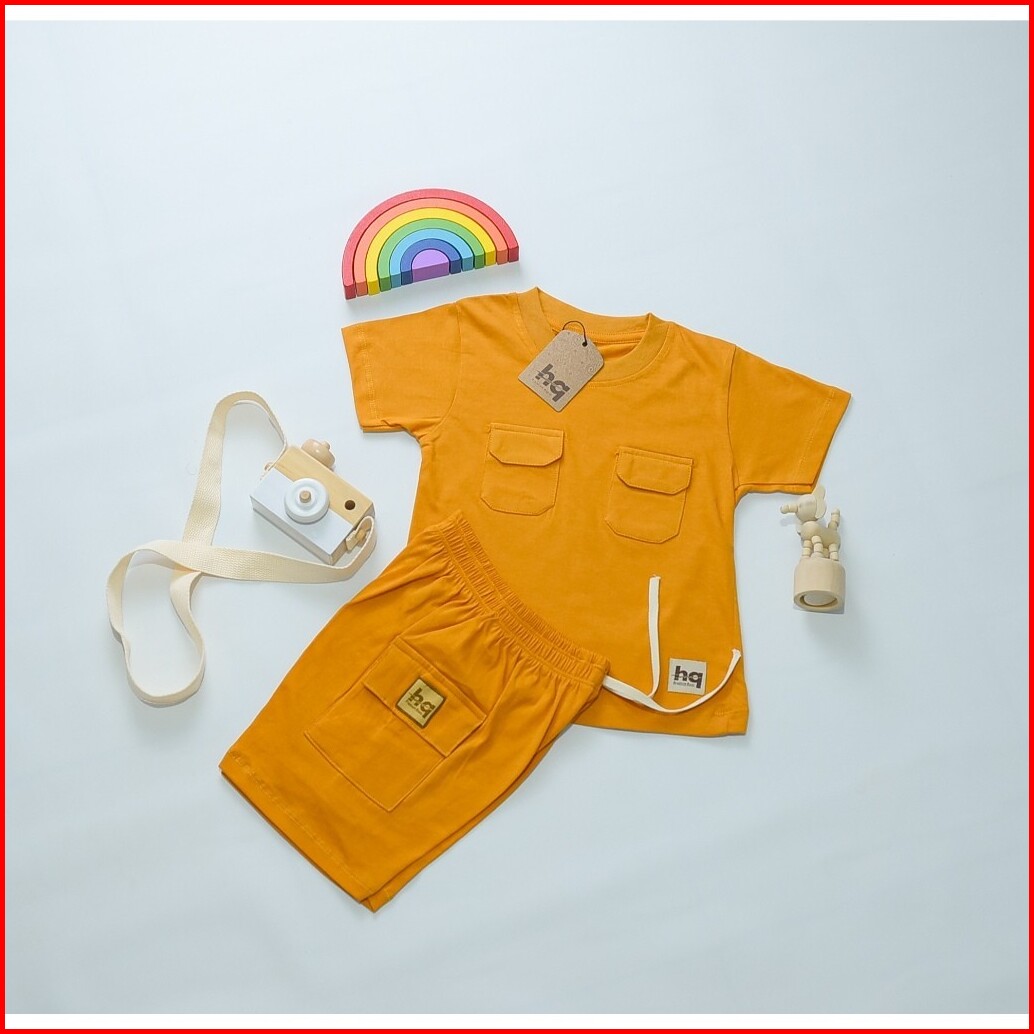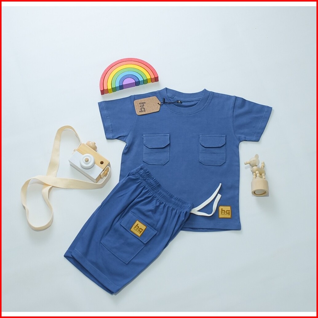 Hq Kaos Baju Setelan Anak Poket Dua Laki Laki Perempuan 1 - 8th Cotton 30s