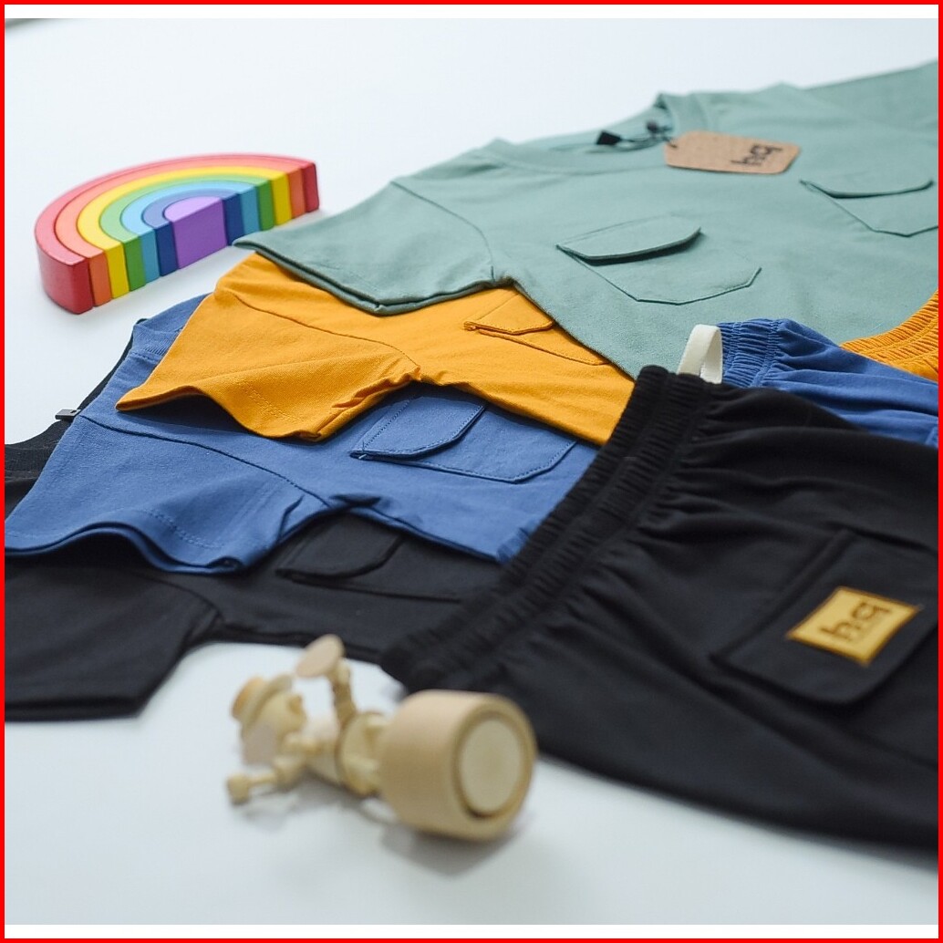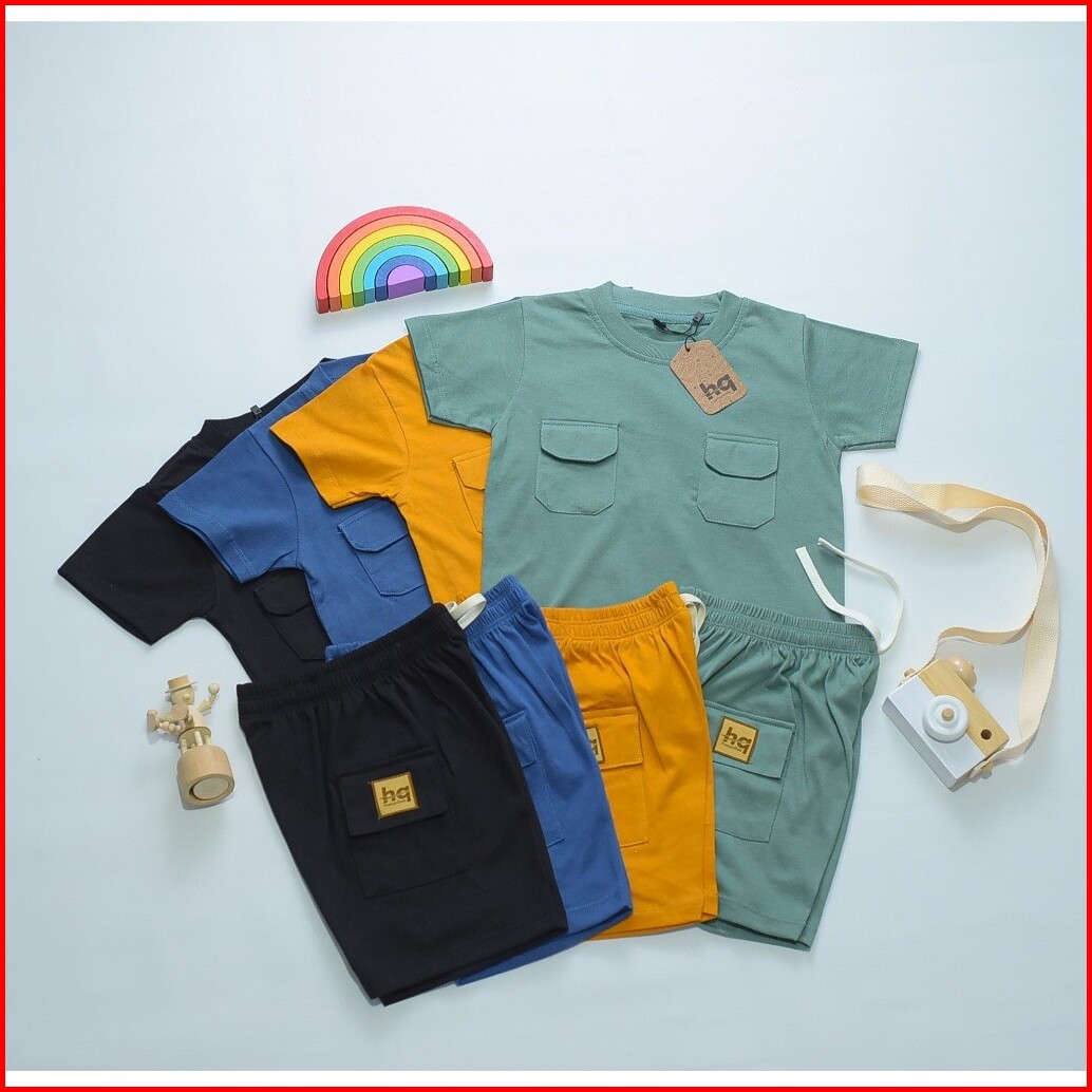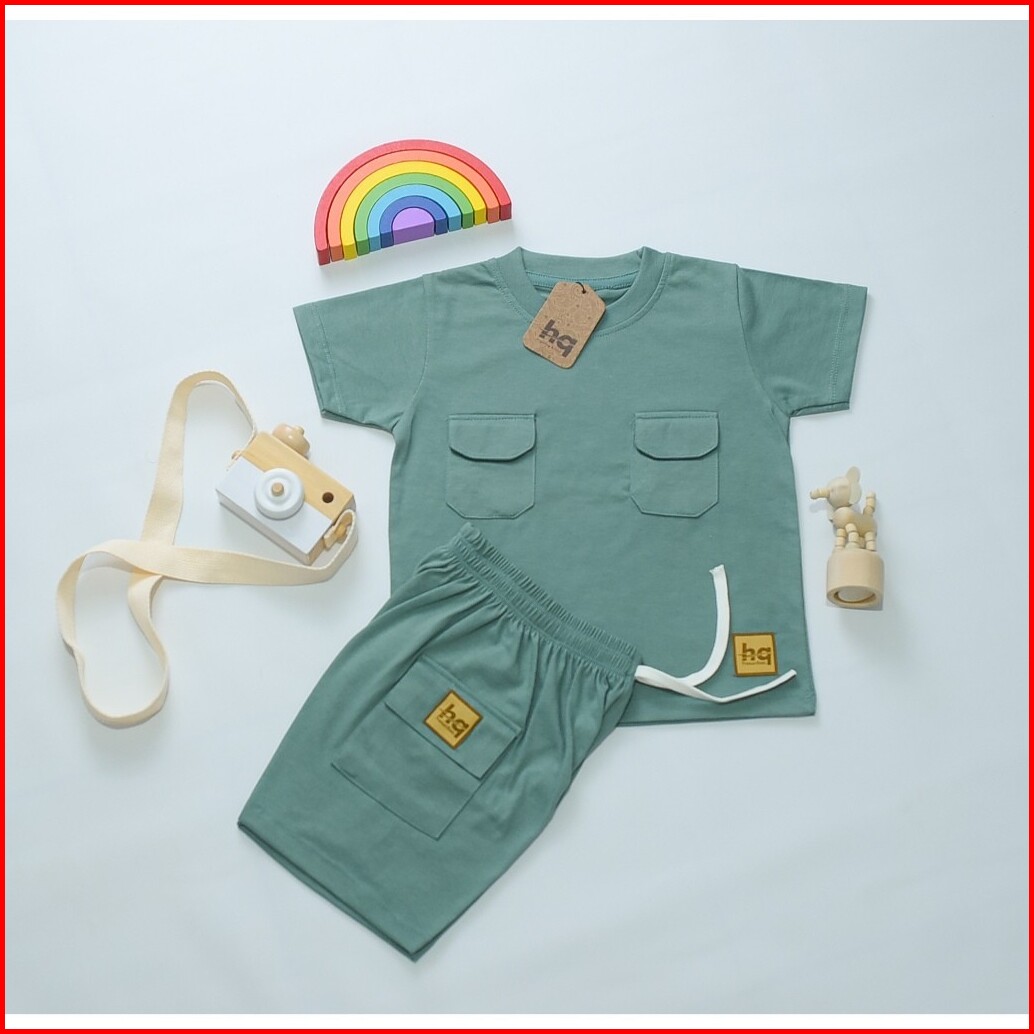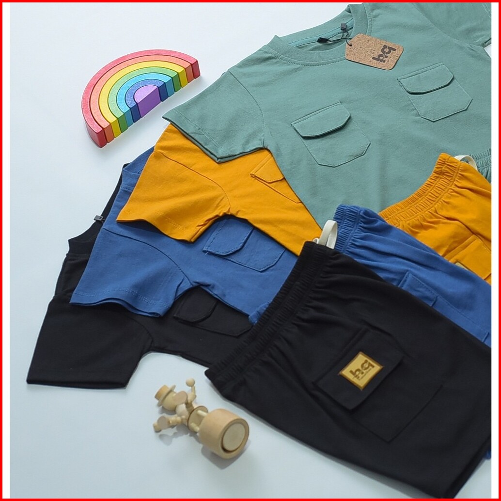 Hq Kaos Baju Setelan Anak Poket Dua Laki Laki Perempuan 1 - 8th Cotton 30s