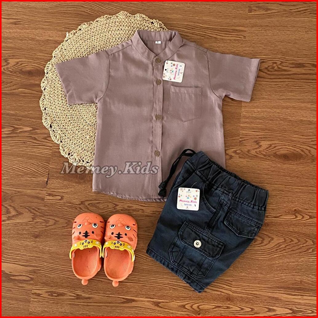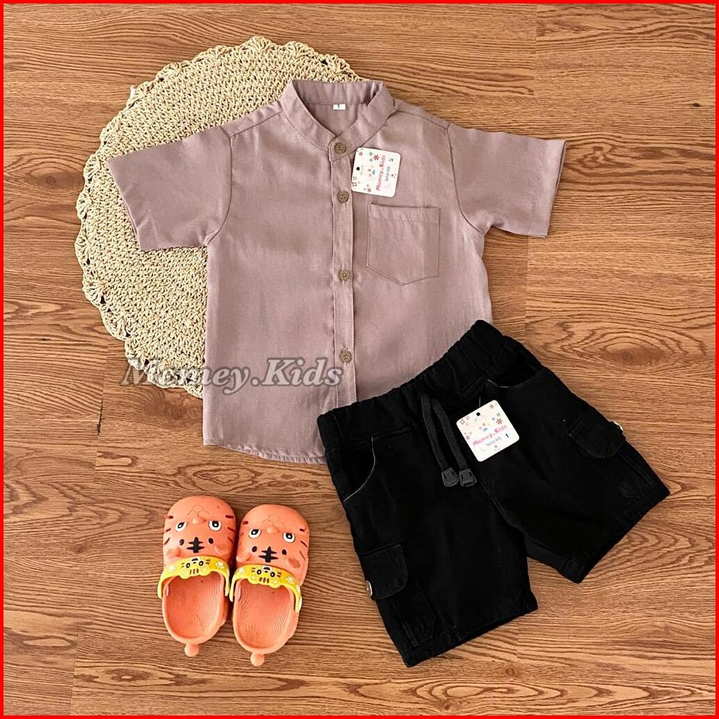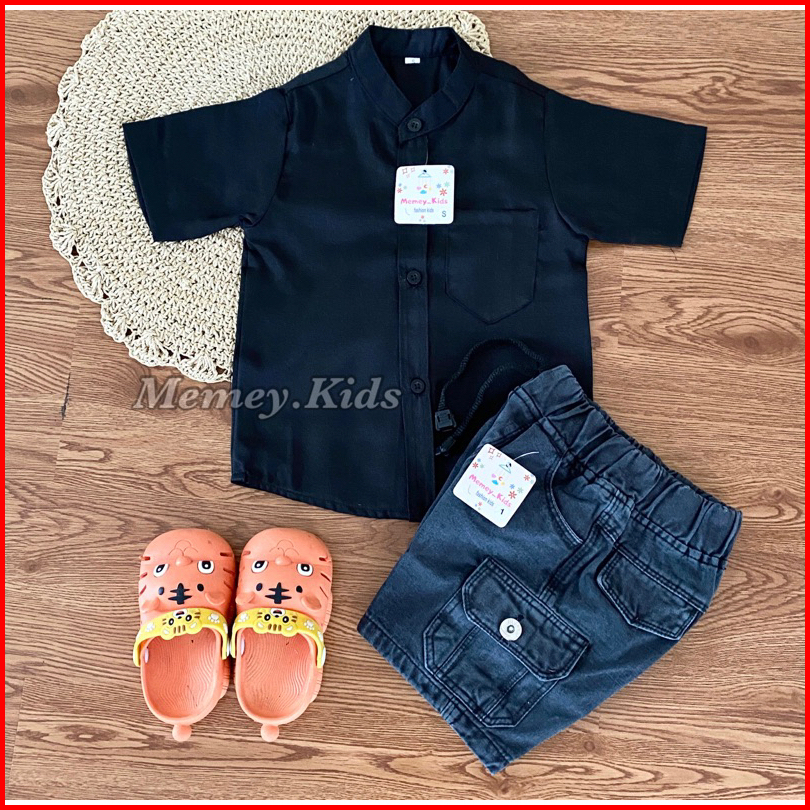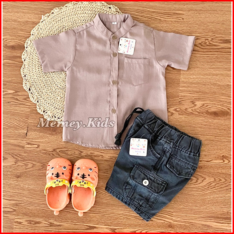 Setelan Pendek Cargo Jeans Setelan Anak Kemeja Koko Jeans One Set Kemeja Baju Setelan Anak Laki Laki Setelan Anak Celana
