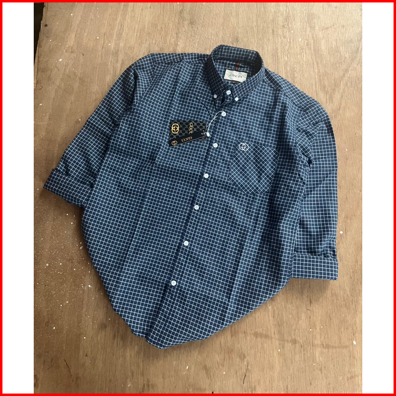 Kemeja Motif Kotak Kotak Gucci Original Import Quality Kemeja Lengan Panjang Pria Terbaru Kemeja Distro Pria Formal Leng
