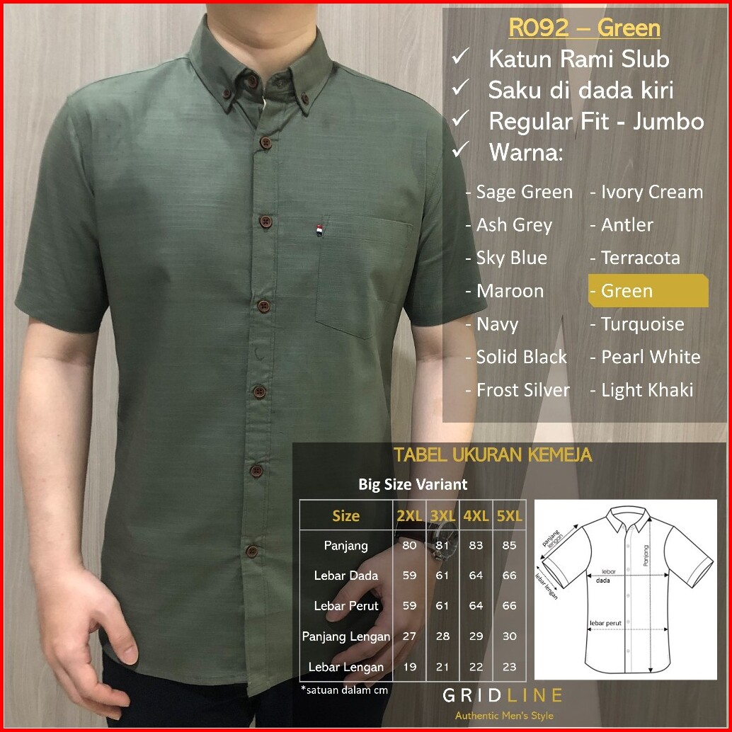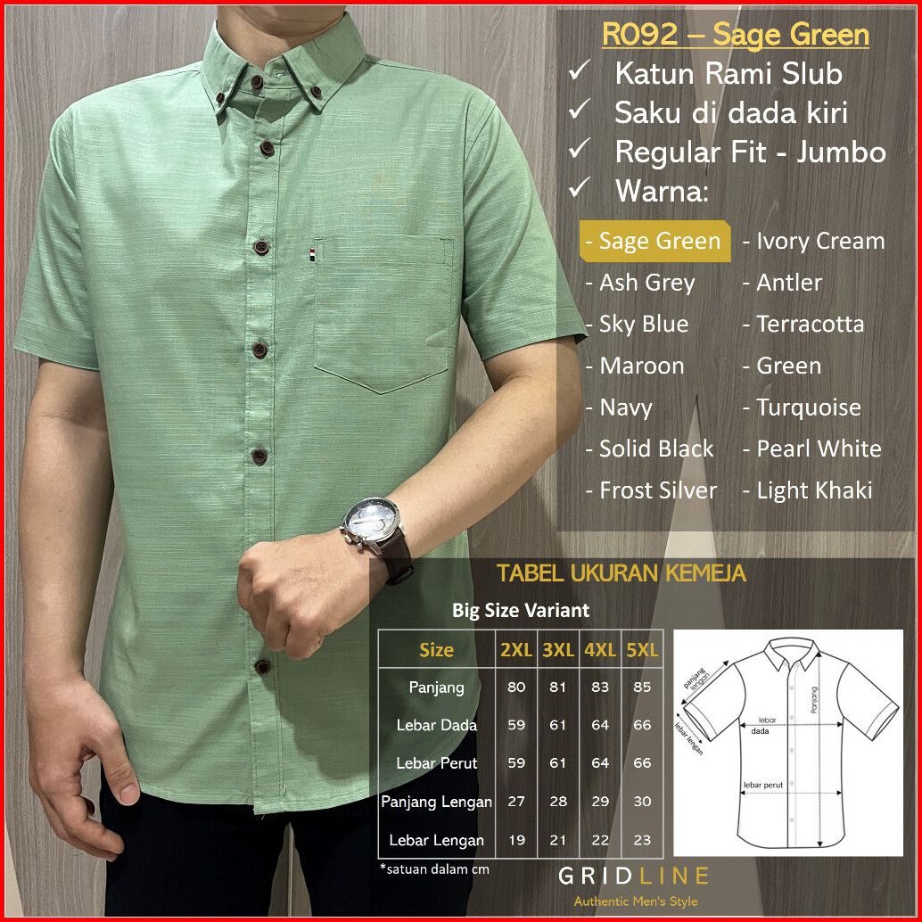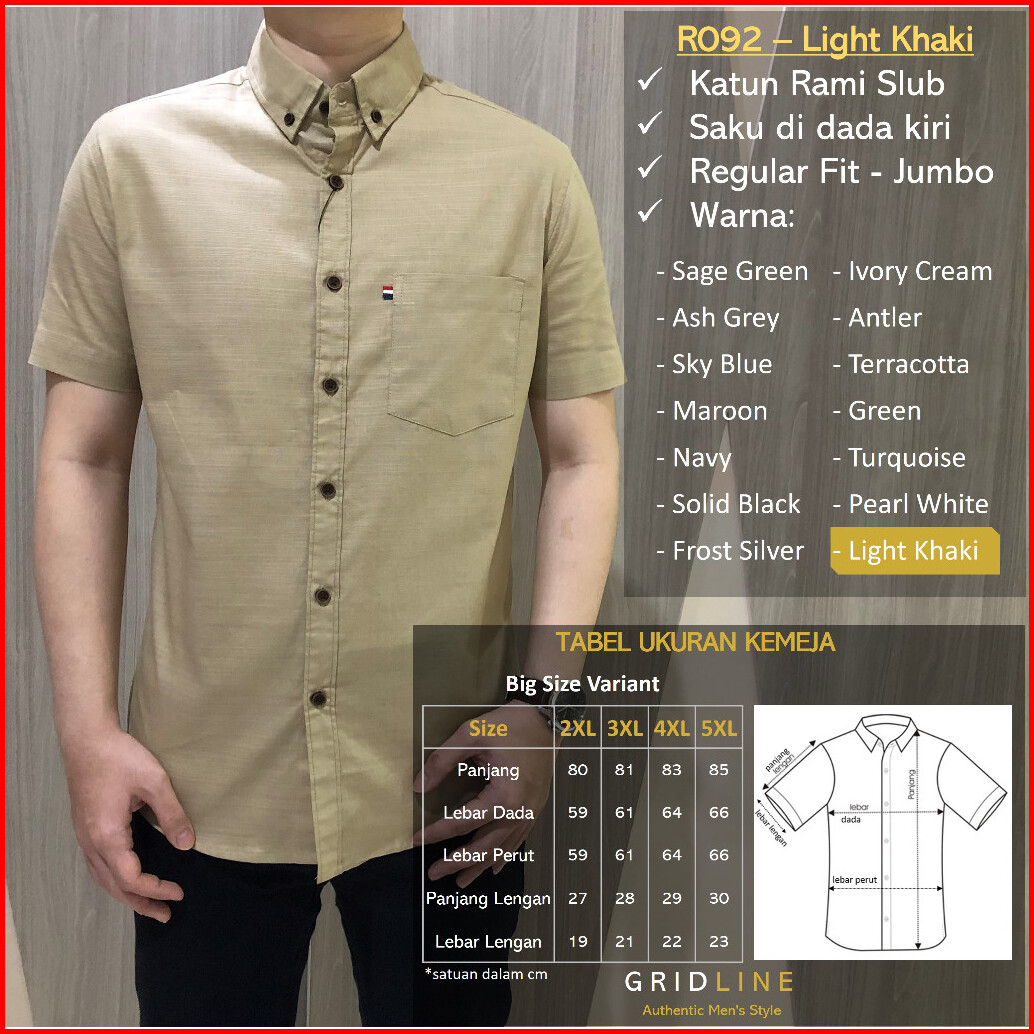 Gridline - R092 Big Size Jumbo Colorful Premium Basic Kemeja Pria Regular Polos Katun Linen Tebal
