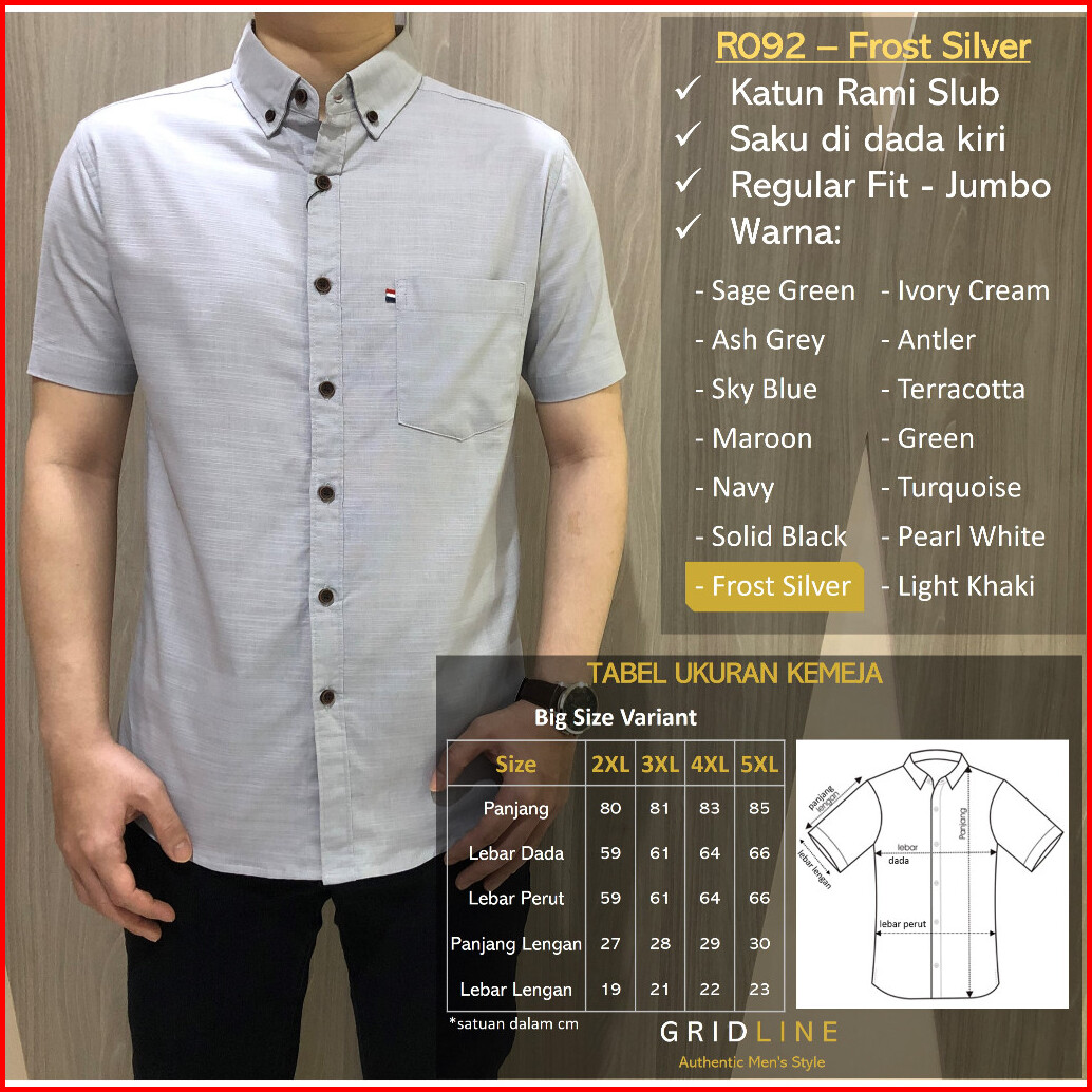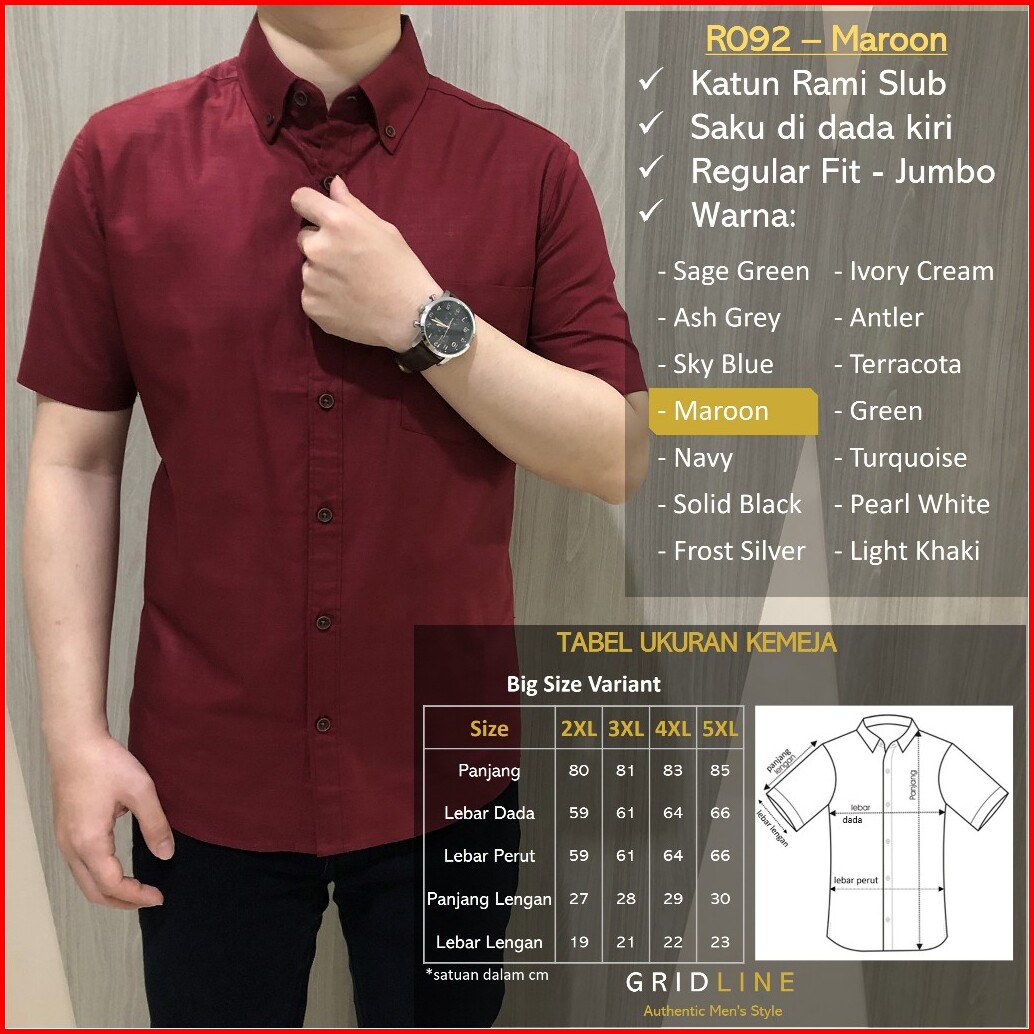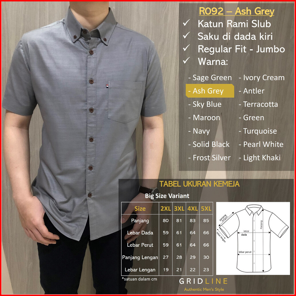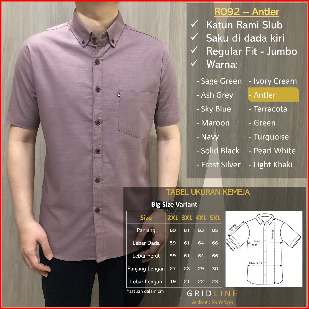 Gridline - R092 Big Size Jumbo Colorful Premium Basic Kemeja Pria Regular Polos Katun Linen Tebal