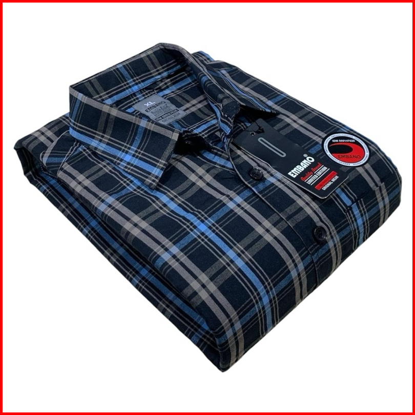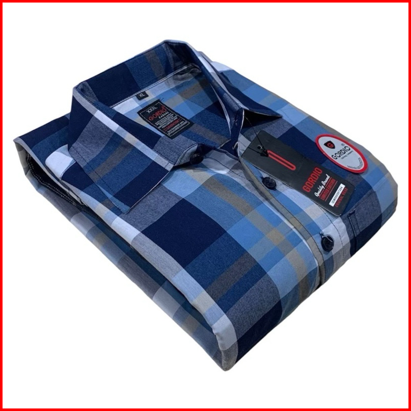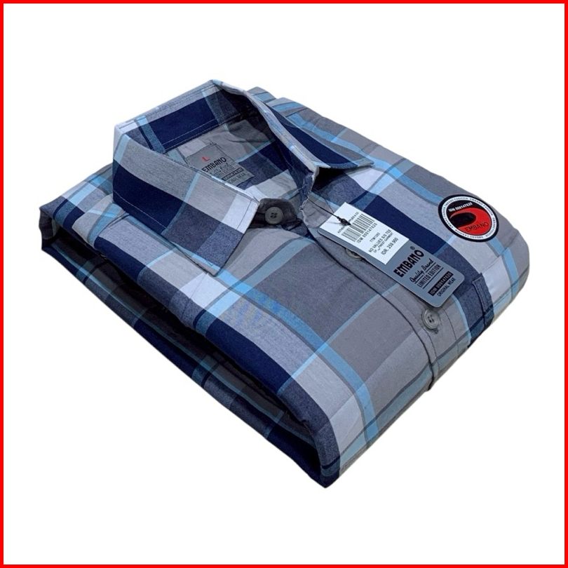 Kemeja Kantor Pria Polinasi Lengan Pendek Motif Kotak Salur Katun Premium Hem Formal M L Xl