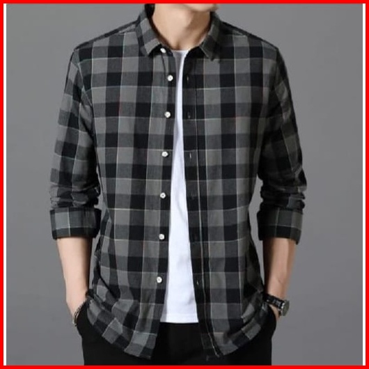 Kemeja Flanel Import Pria Premium Lengan Panjang Motif Kotak