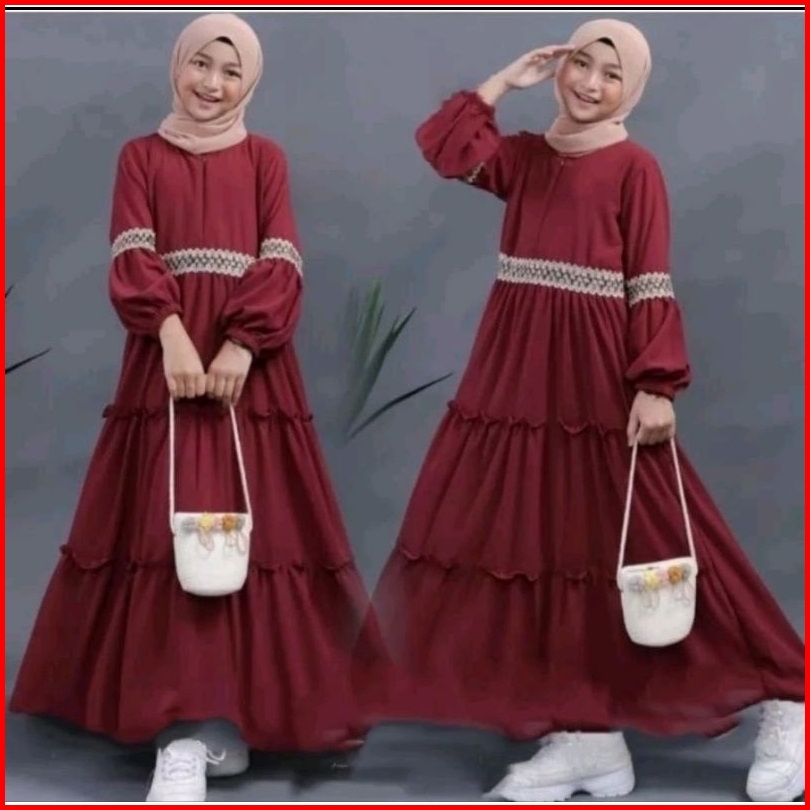 Baju Muslim Anak Usia 4-12thn Gamis Anak Perempuan Crinkle Airflow Pakaian Muslim Anak