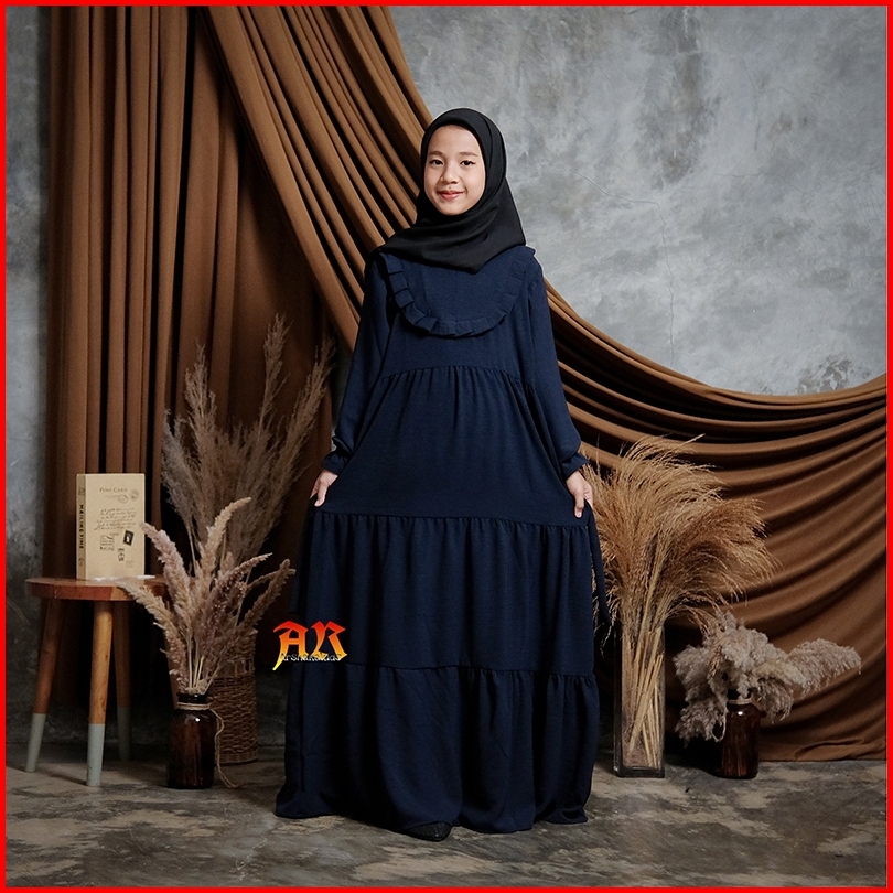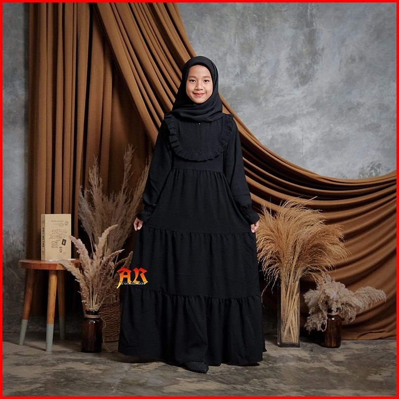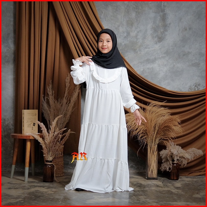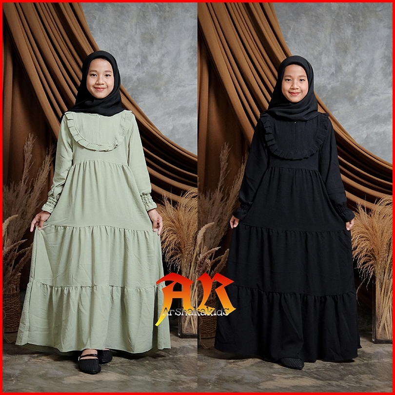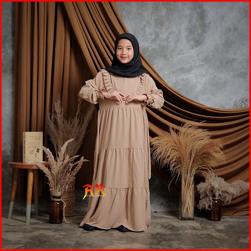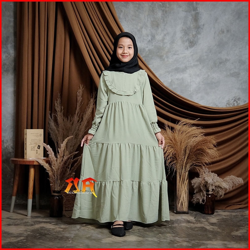 Gamis Cringkle Anak Perempuan 6-16 Tahun Remaja Tanggung Fashion Muslim Longdress Kids Girl Serut Susun Modern Premium
