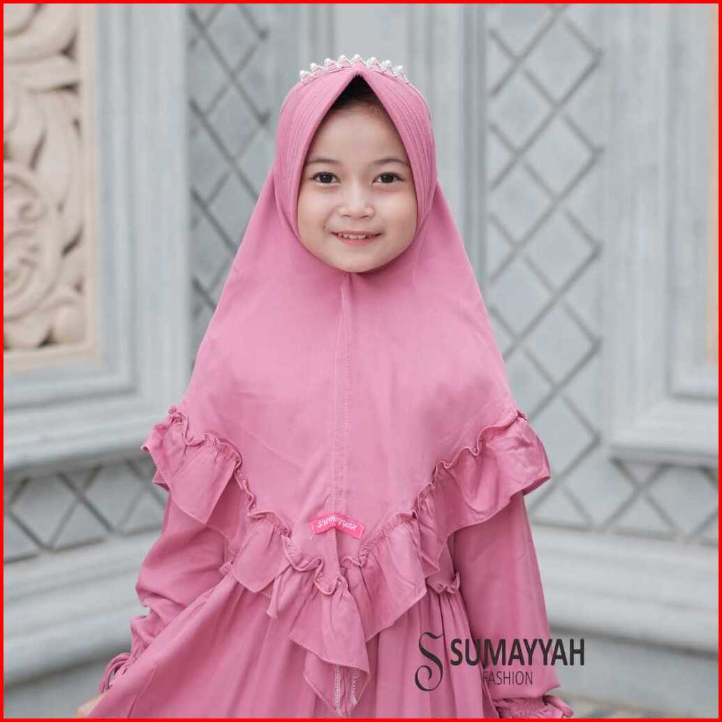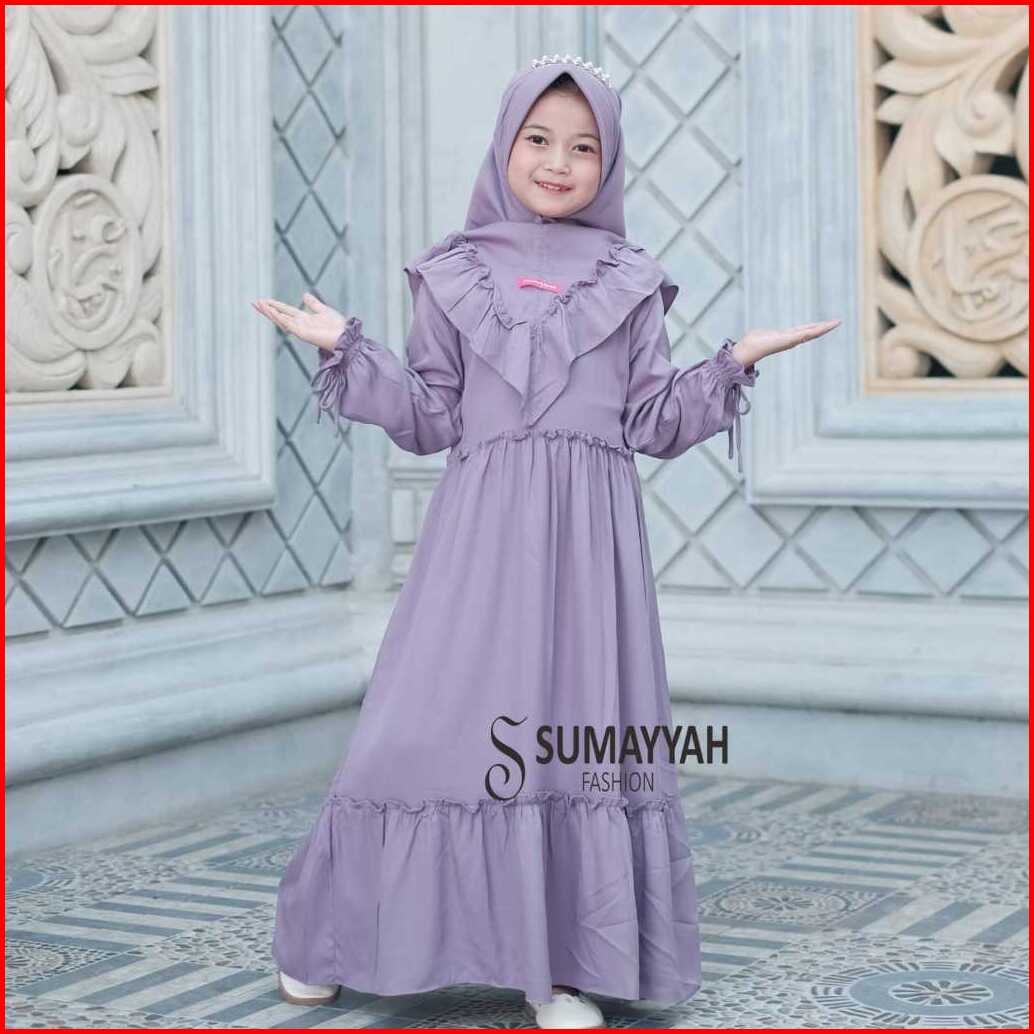 Sumayyah Baju Gamis Muslim Anak Perempuan Rayon Polos Twill Premium Set Hijab Usia 1-10 Tahun
