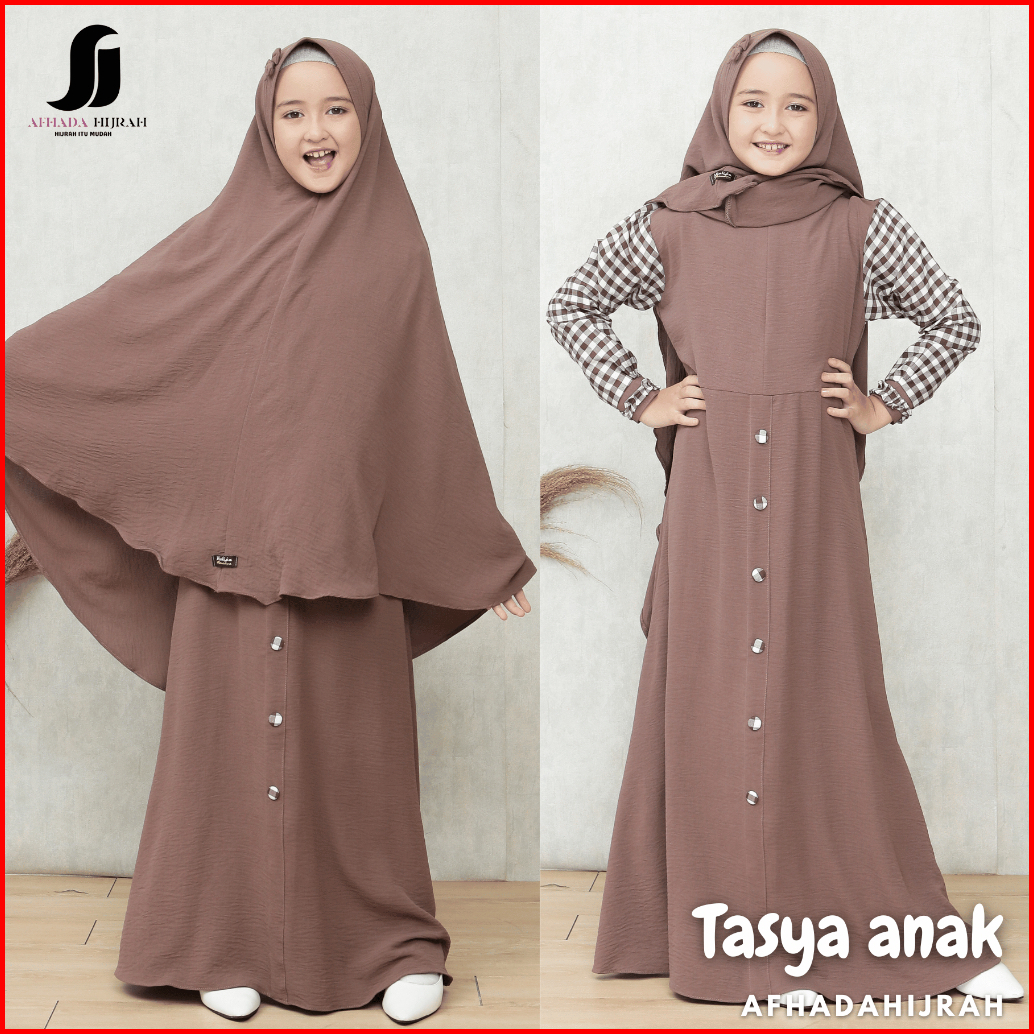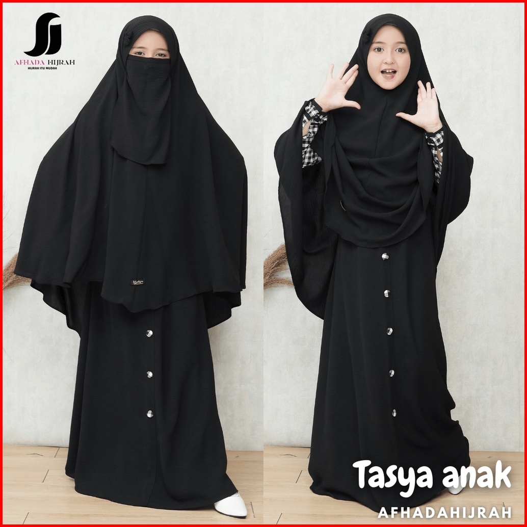 Afhadahijrah - Gamis Anak Perempuan Set Cadar Tasya Formal Black Terbaru Baju Dan Hijab Syari Free Niqab