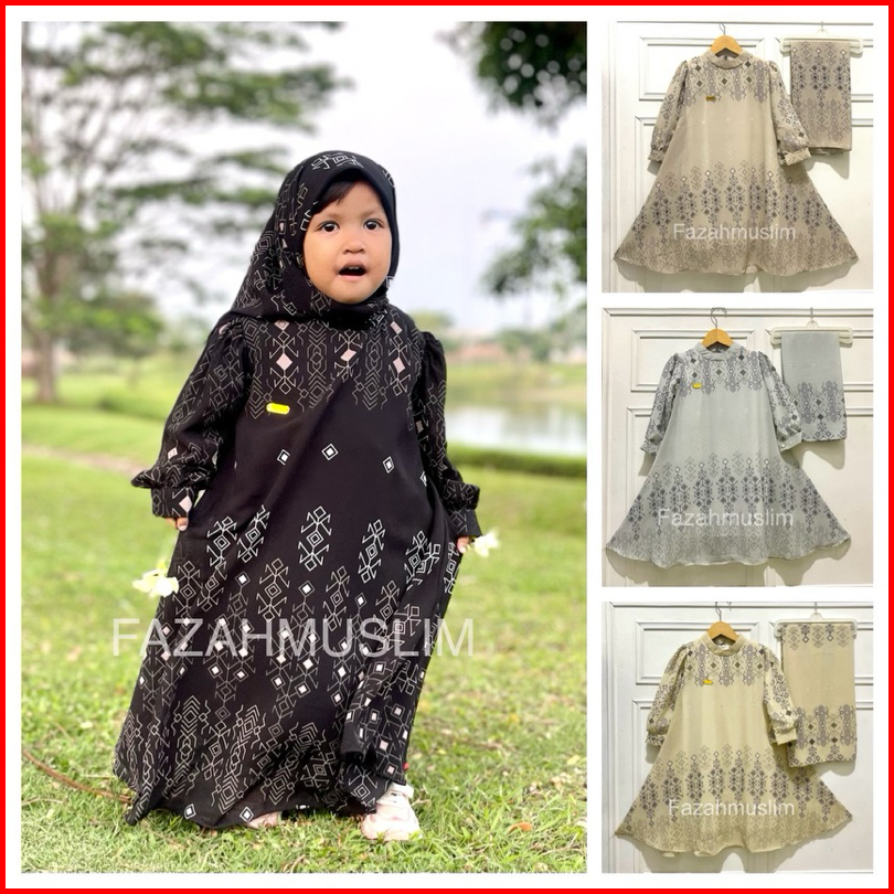 Gamis Anak Set Hijab Dress Syari Pesta Mewah Ceruty Baju Muslim Anak Perempuan 1-10 Tahun