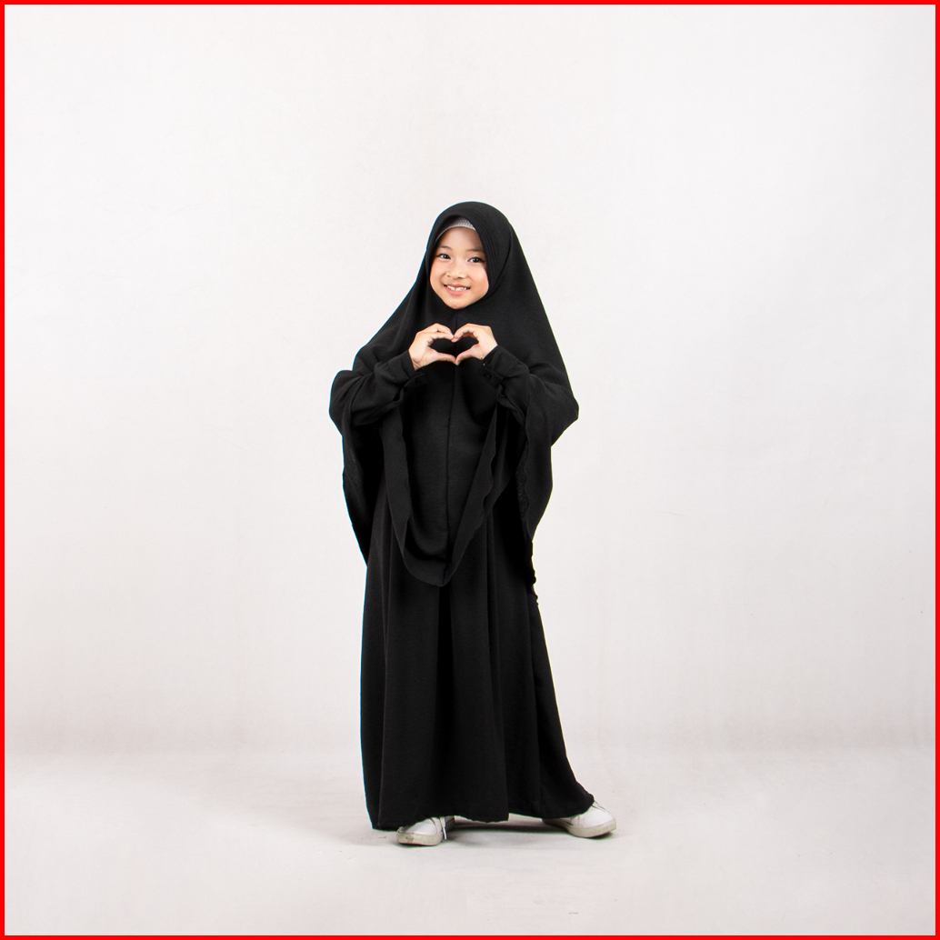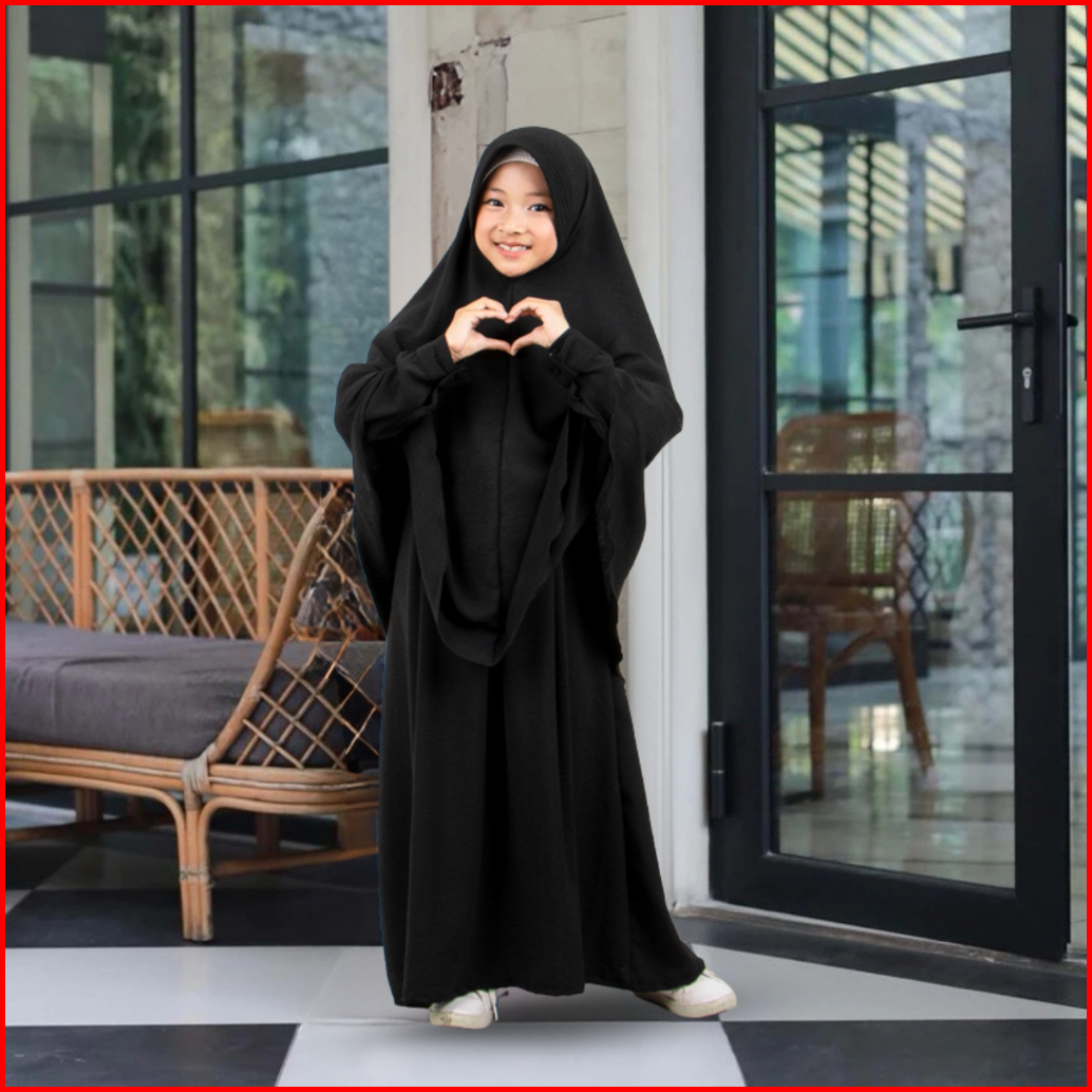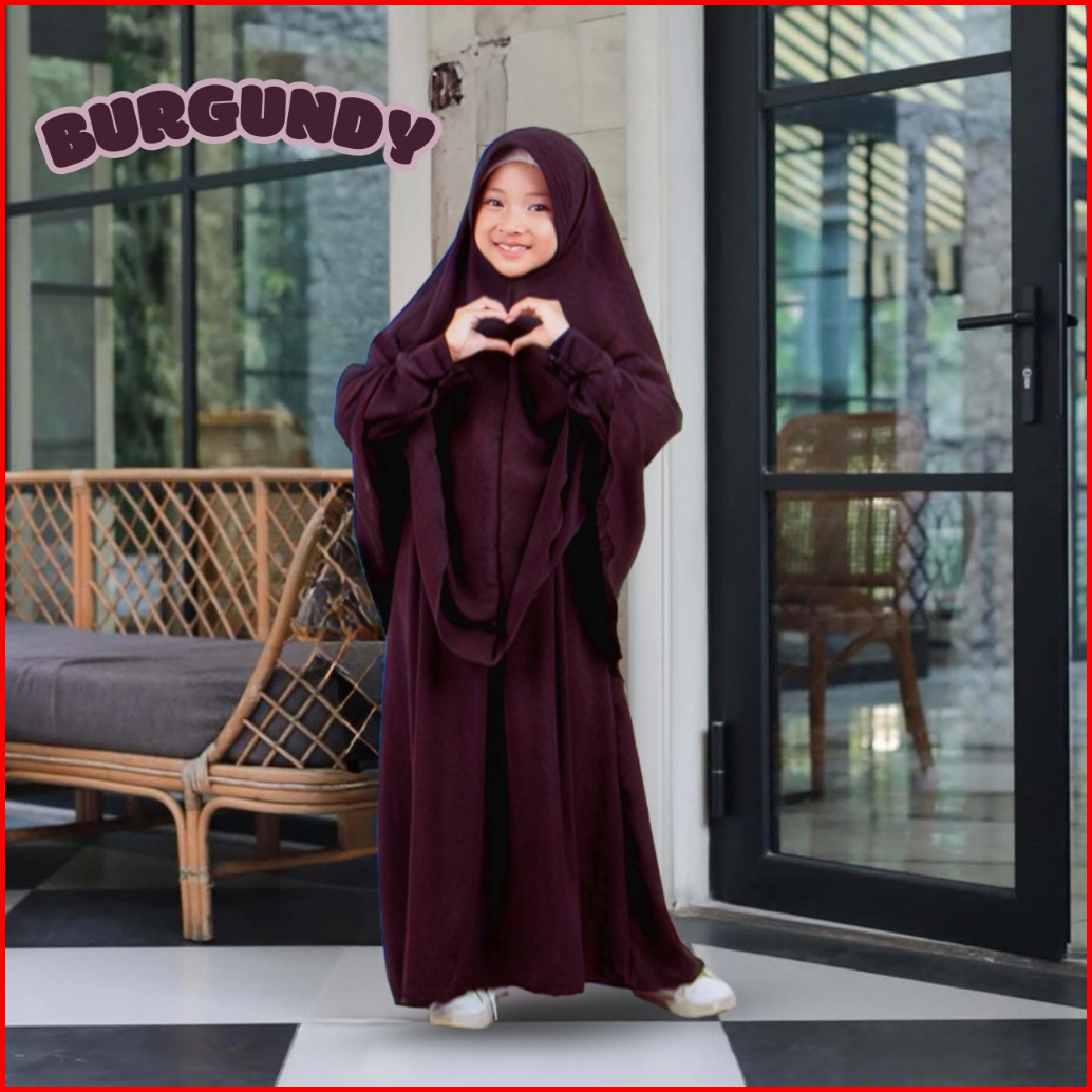 Gamis Anak Terbaru 2025 Raya Burgundy Set Jilbab Hijab Setelan Syari Lebaran Premium Branded Maroon