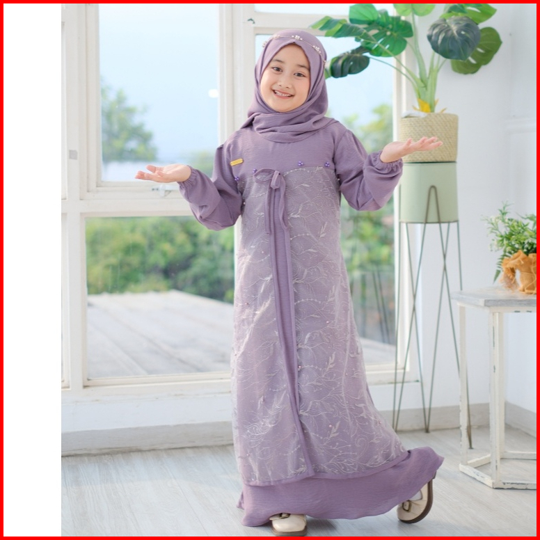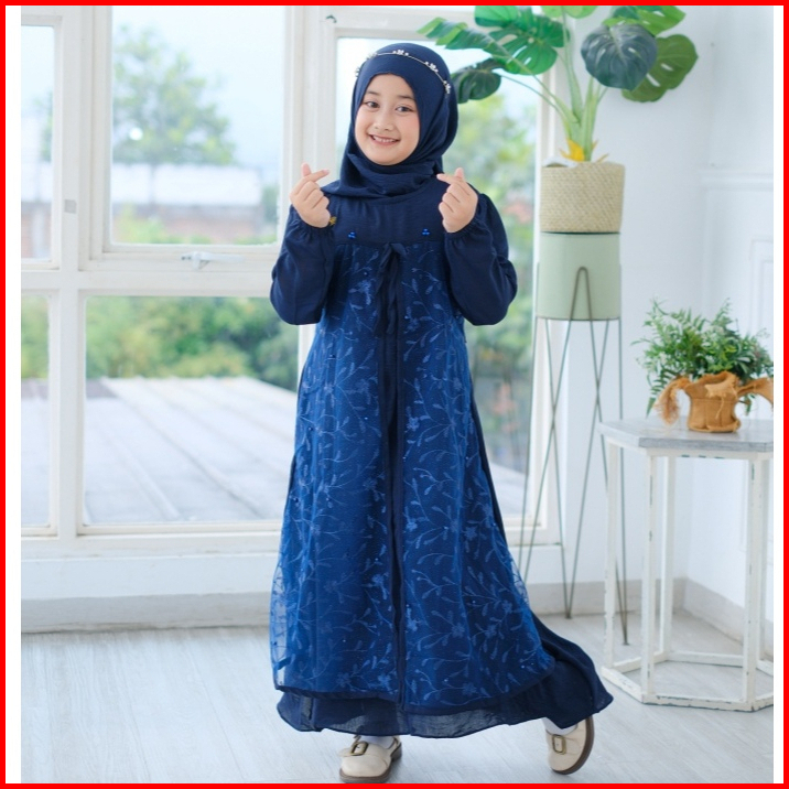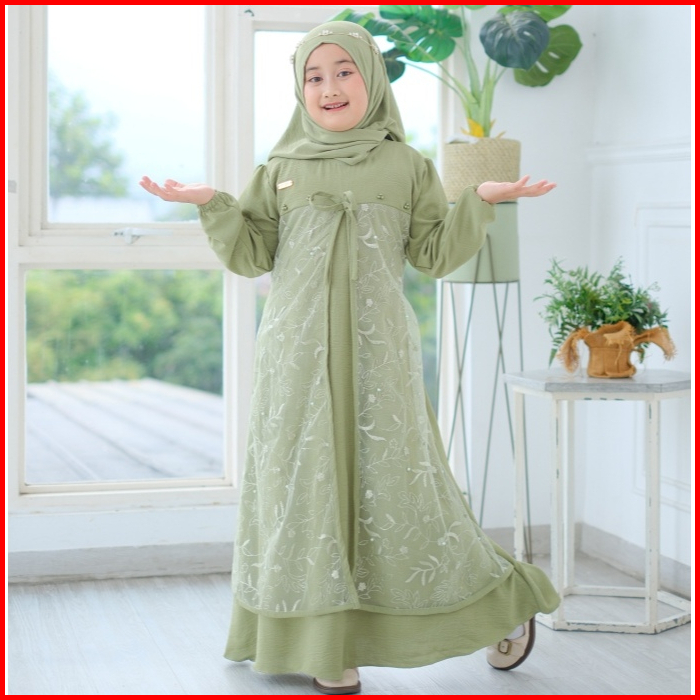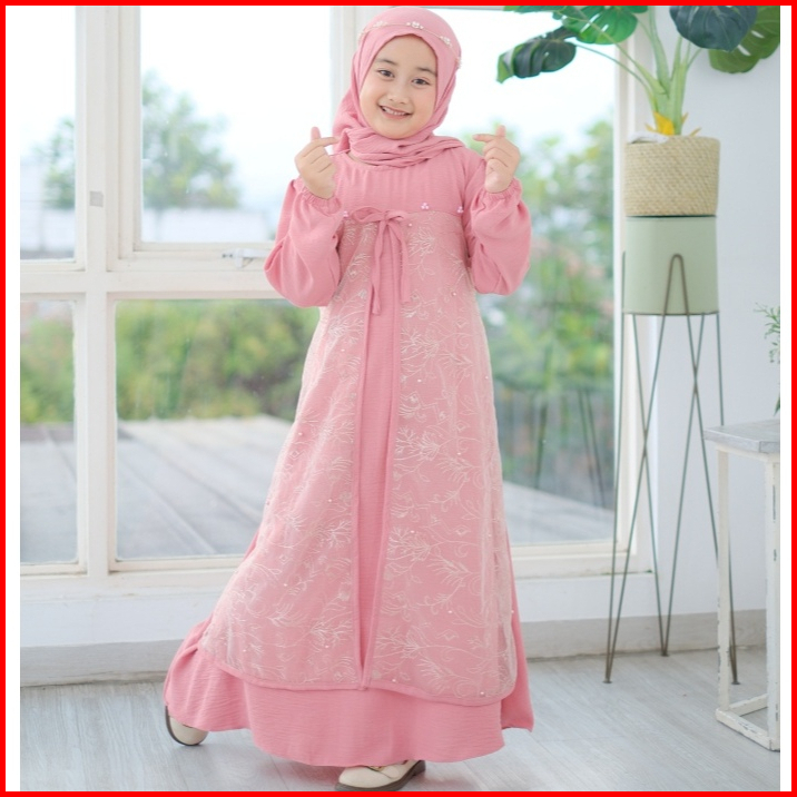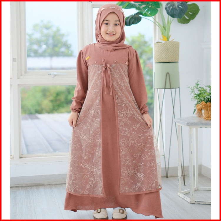 Naira Dress Gamis Anak Terbaru Bahan Kringkel Hq Mix Tille Akar Usia 3 - 11 Tahun Dress Kondangan