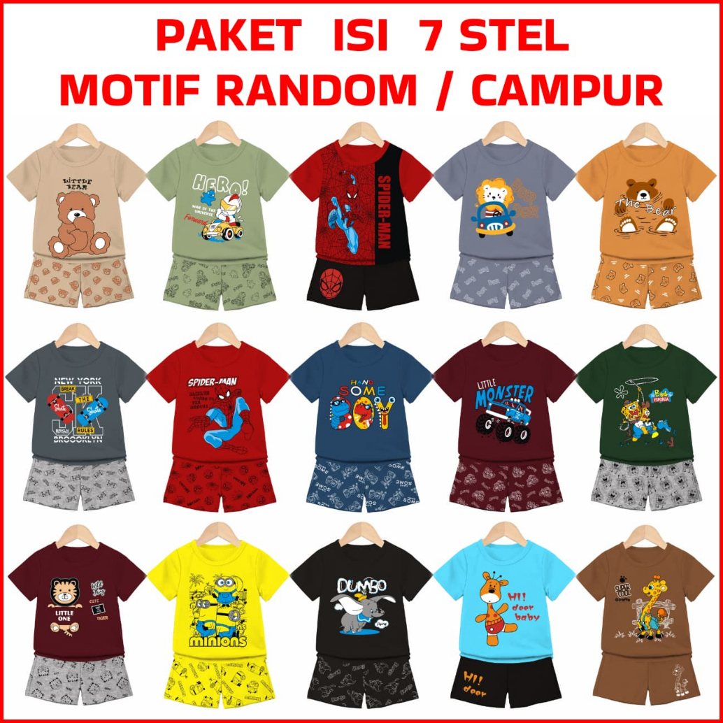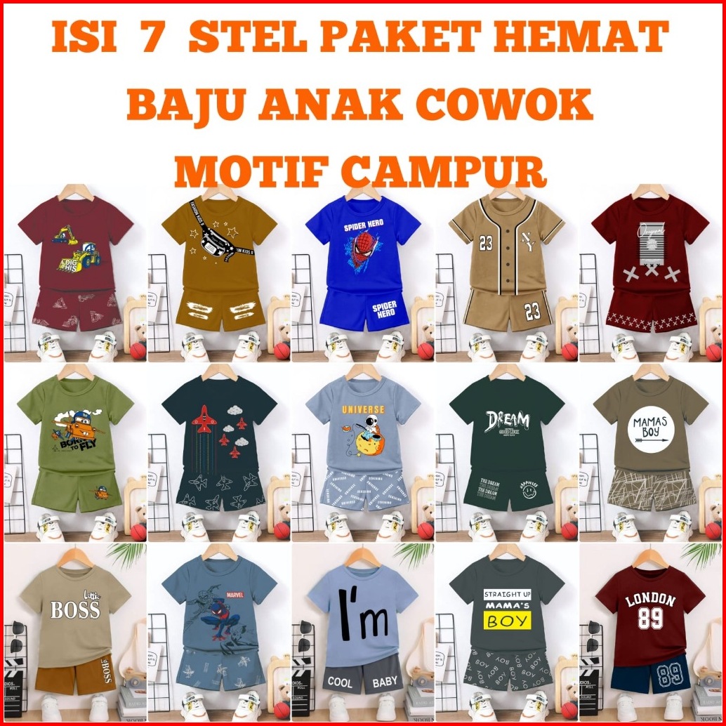 Paket Hemat Isi 7 Pcs Setelan Baju Anak Laki Laki 1-6 Tahun