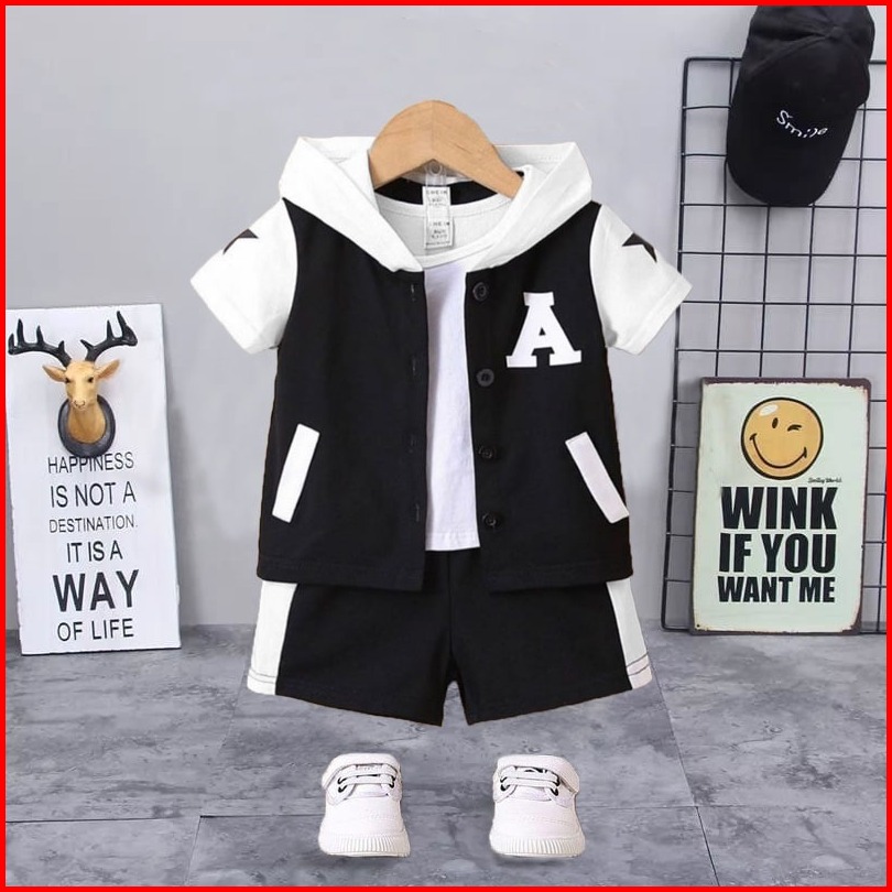 Promo-setelan 3 In 1anak Hoodie Anak Celana Pendek Anak Usia 1-5 Tahun Setelan A Star Baju Anak Pakaian Anak Kaos Anak
