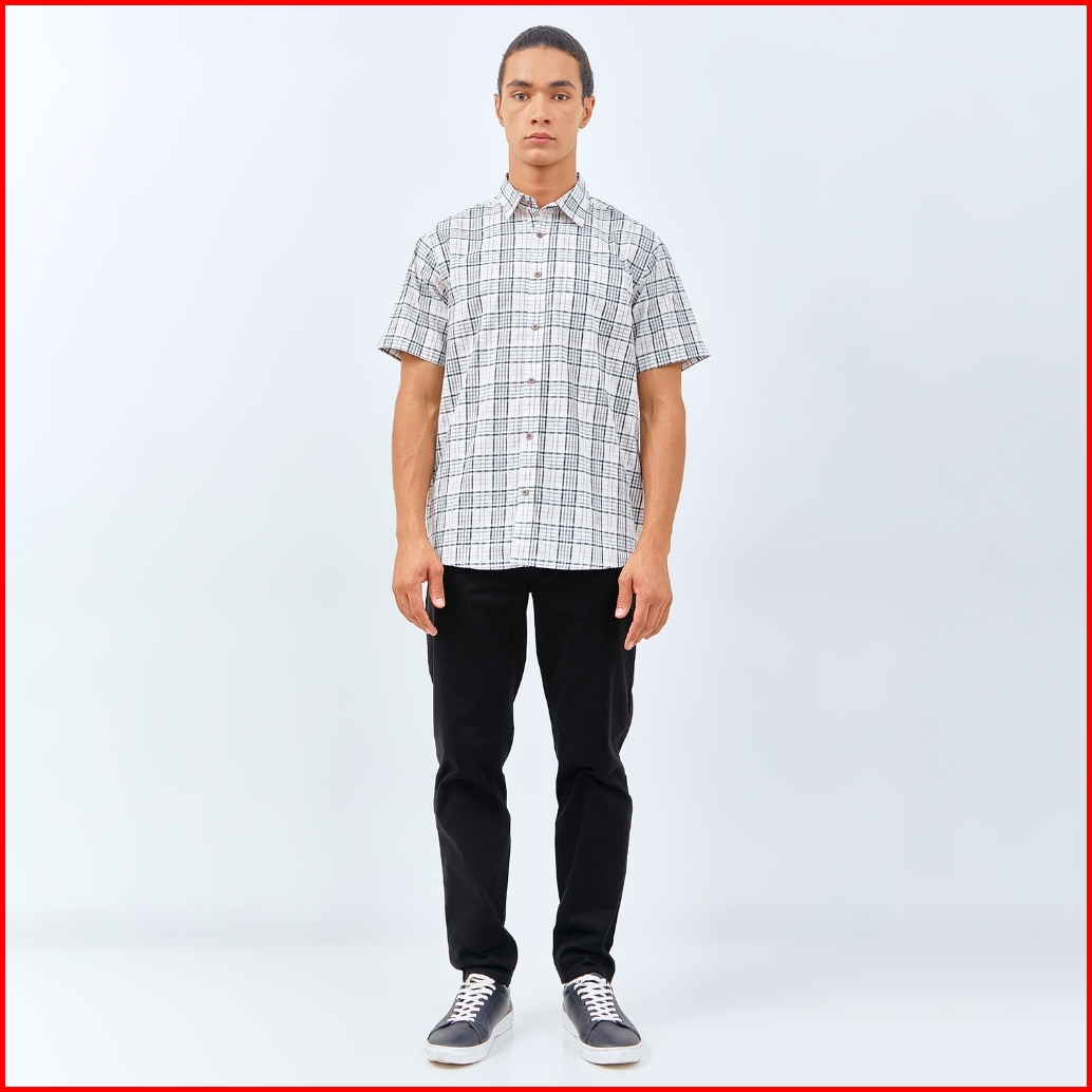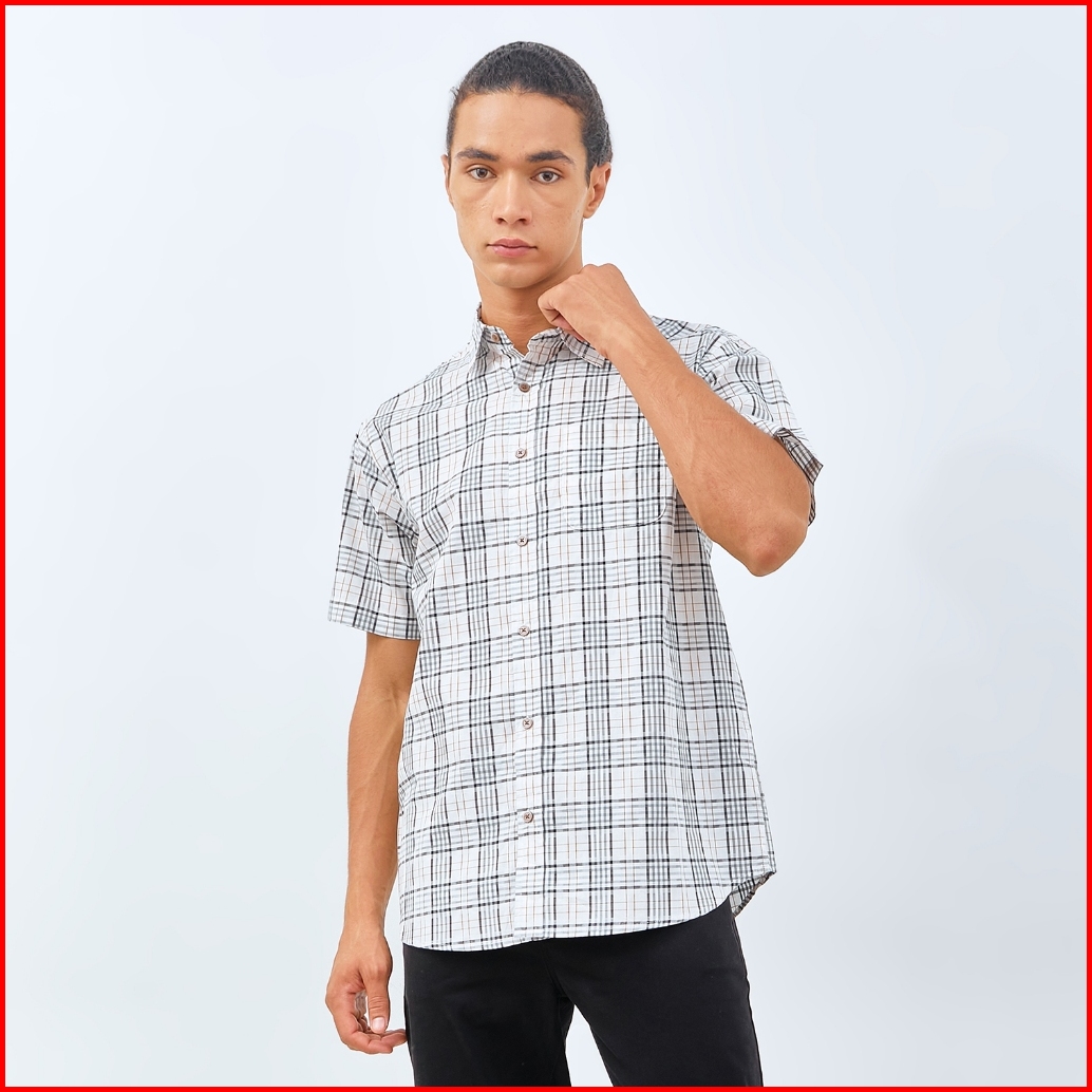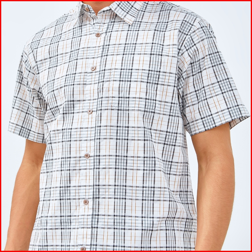 M231 Kemeja Pria Yarn Dyed Kotak Pendek Putih 0149