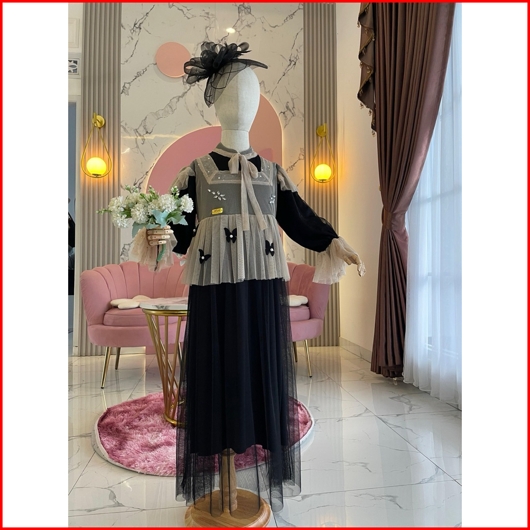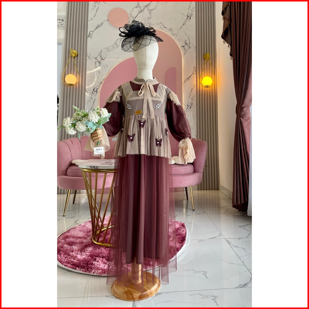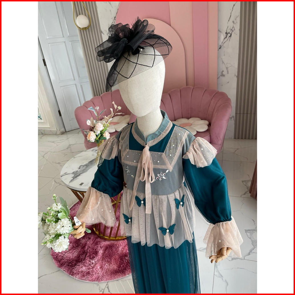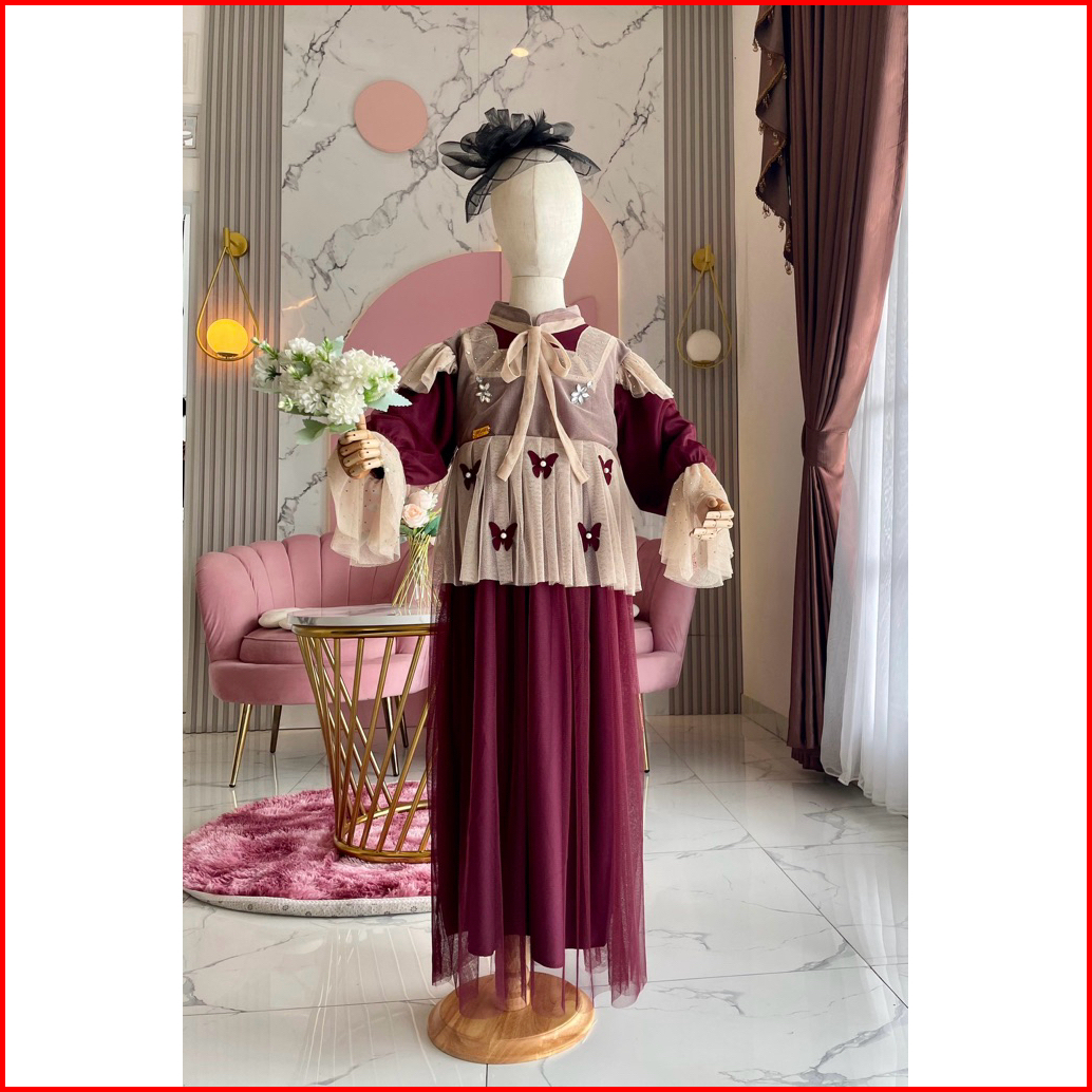 Celine Kupu Dress Anak 3-15 Tahun Coquette Gamis Brukat Anak Motif Kupu Gamis Lebaran Anak Terbaru
