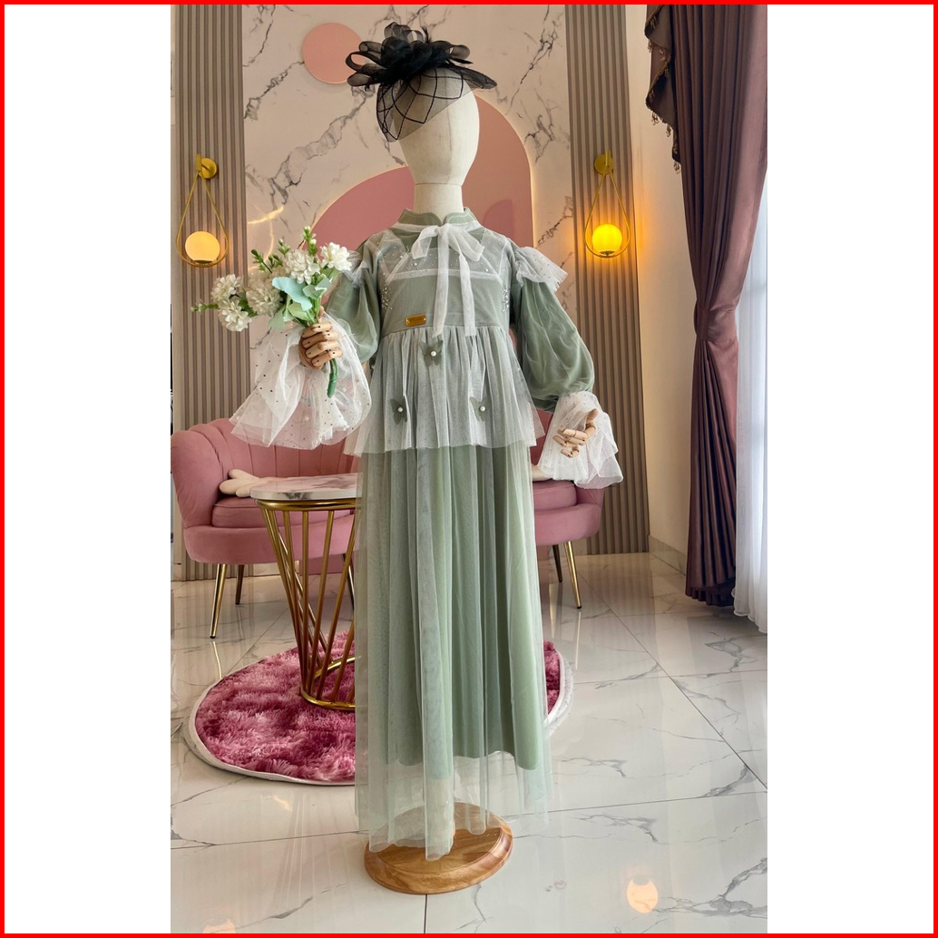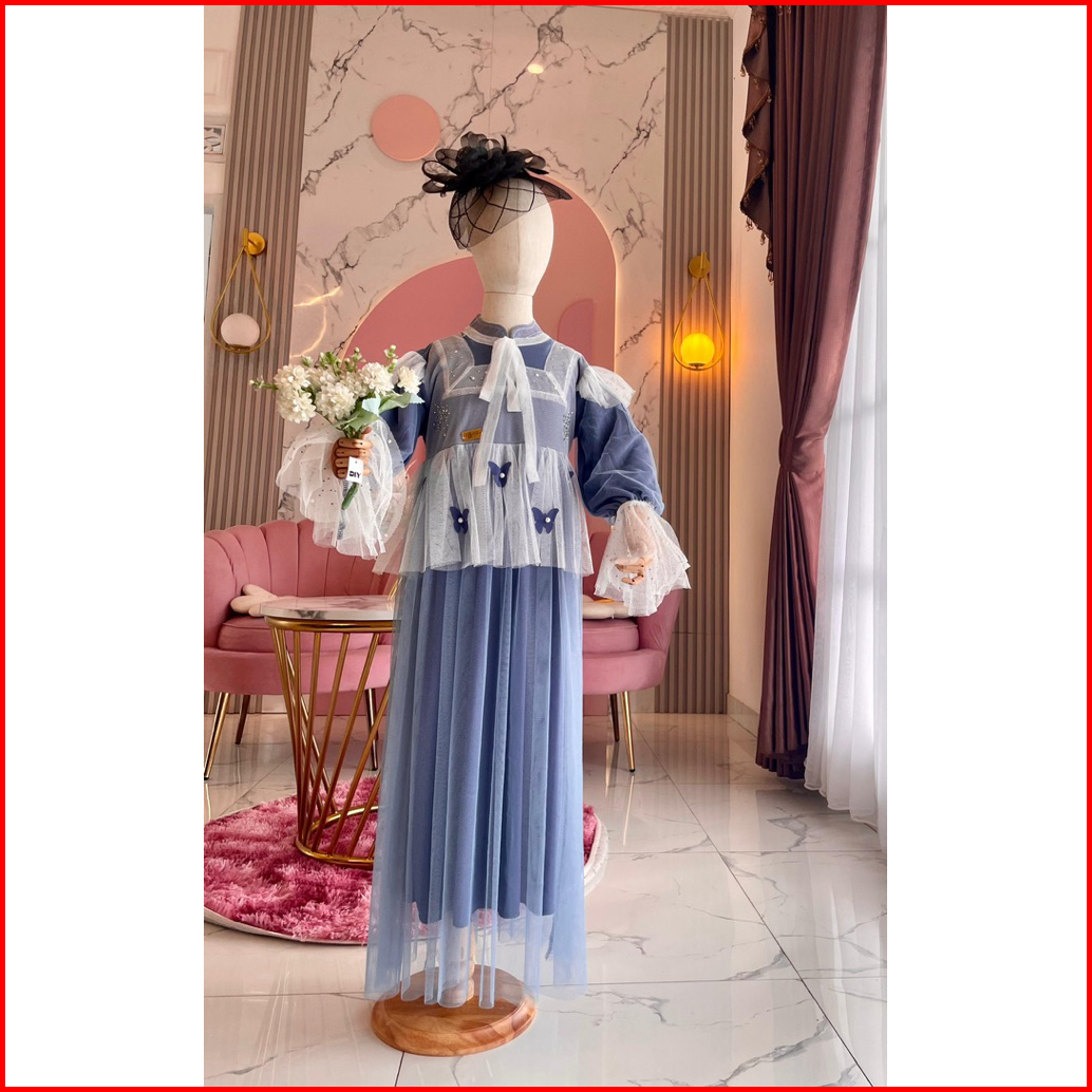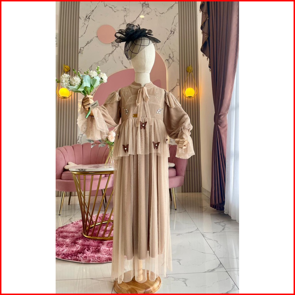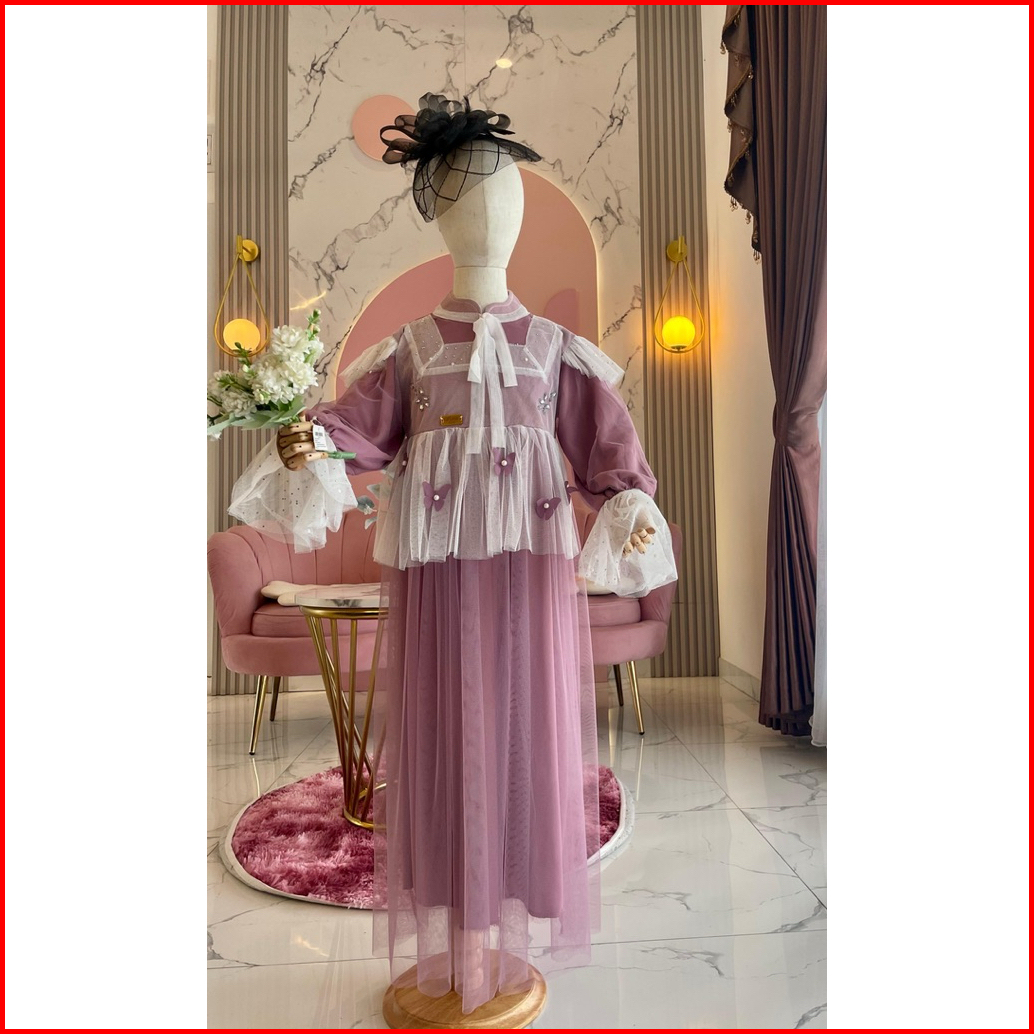 Celine Kupu Dress Anak 3-15 Tahun Coquette Gamis Brukat Anak Motif Kupu Gamis Lebaran Anak Terbaru