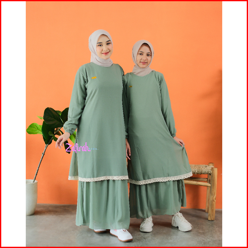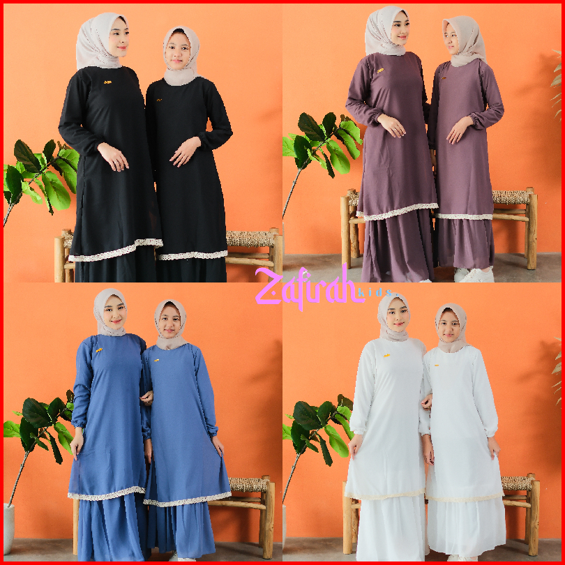 Gamis Malaysia Couple Ibu Anak Perempuan Moms And Kids Hilyah Bahan Ceruty Baby Doll Rempel Plus Renda Muslimah Tanggung