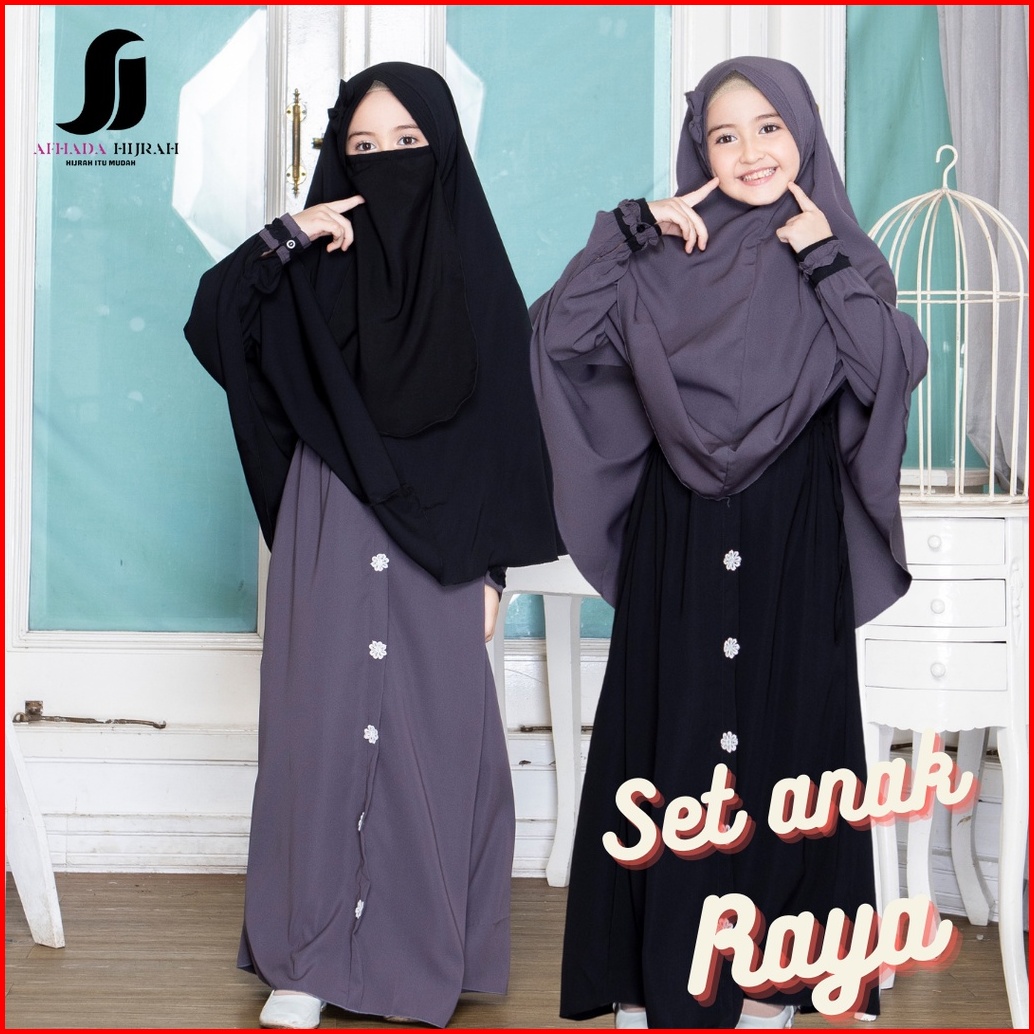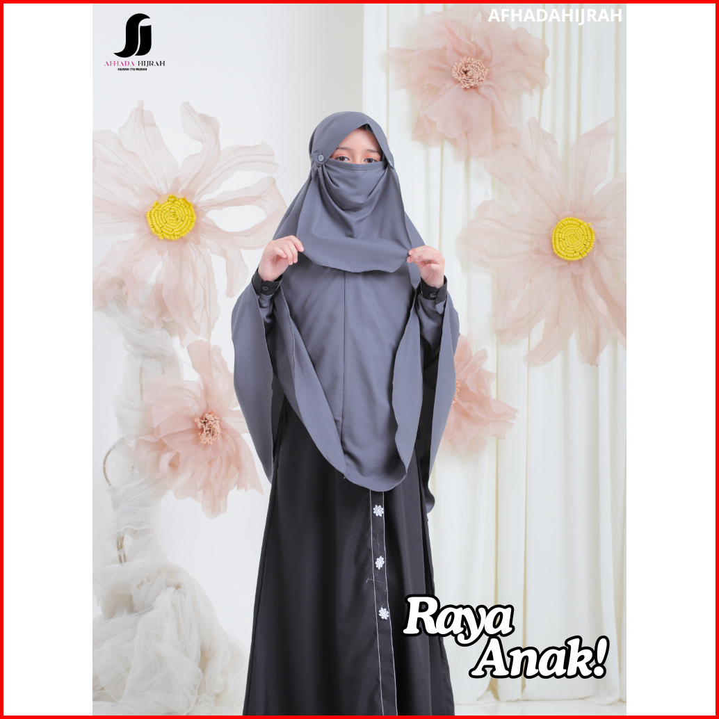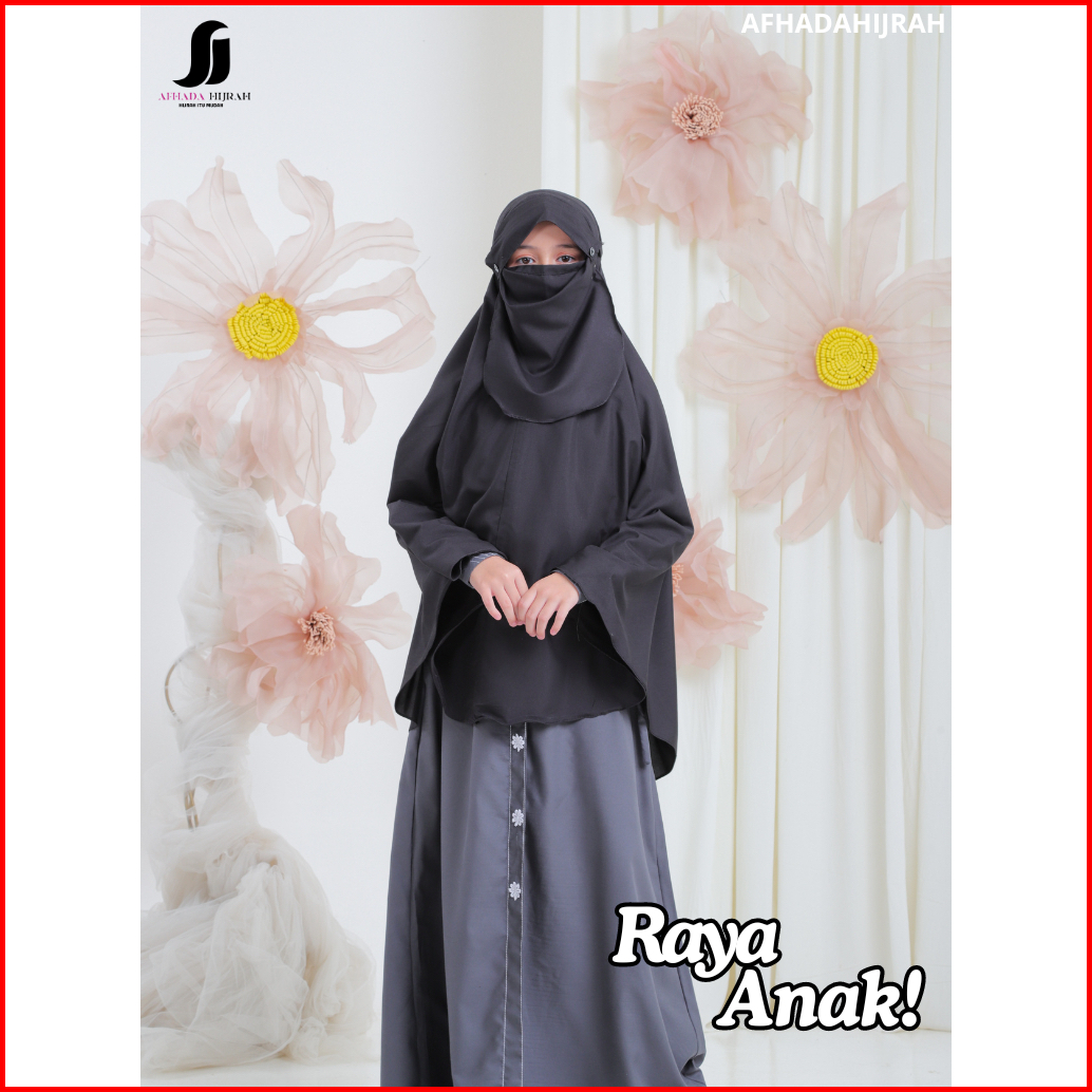 Afhadahijrah - Gamis Anak Perempuan Set Cadar Raya Abu Hitam Terbaru Baju Dan Hijab Syari Free Niqab Afhadahijrah