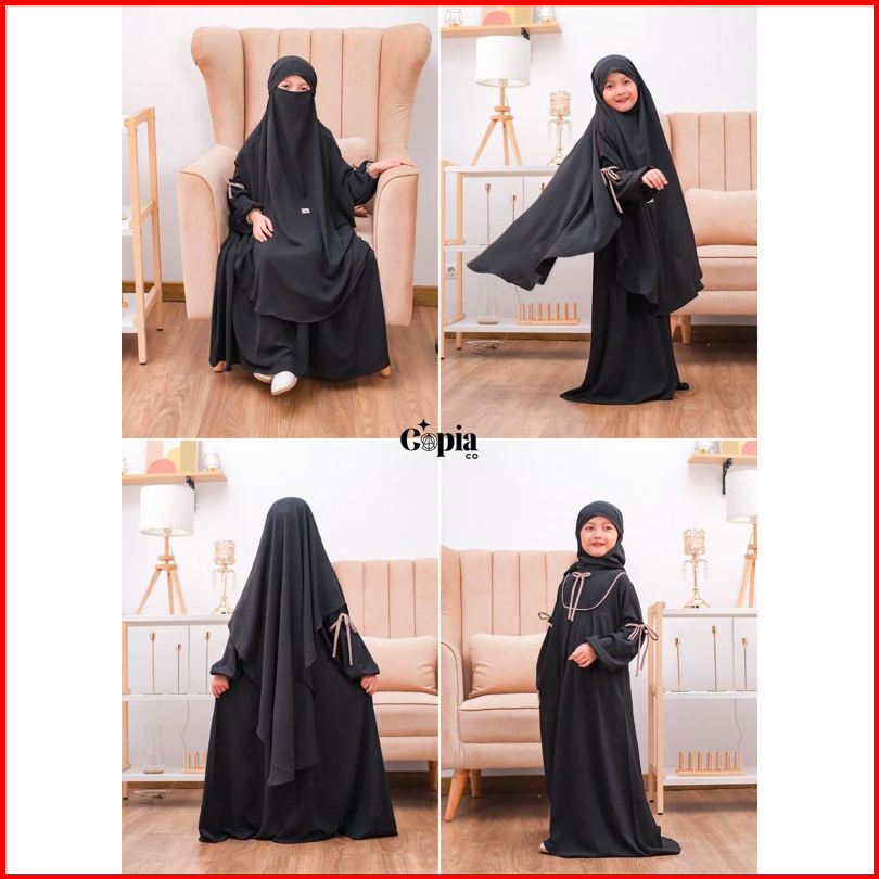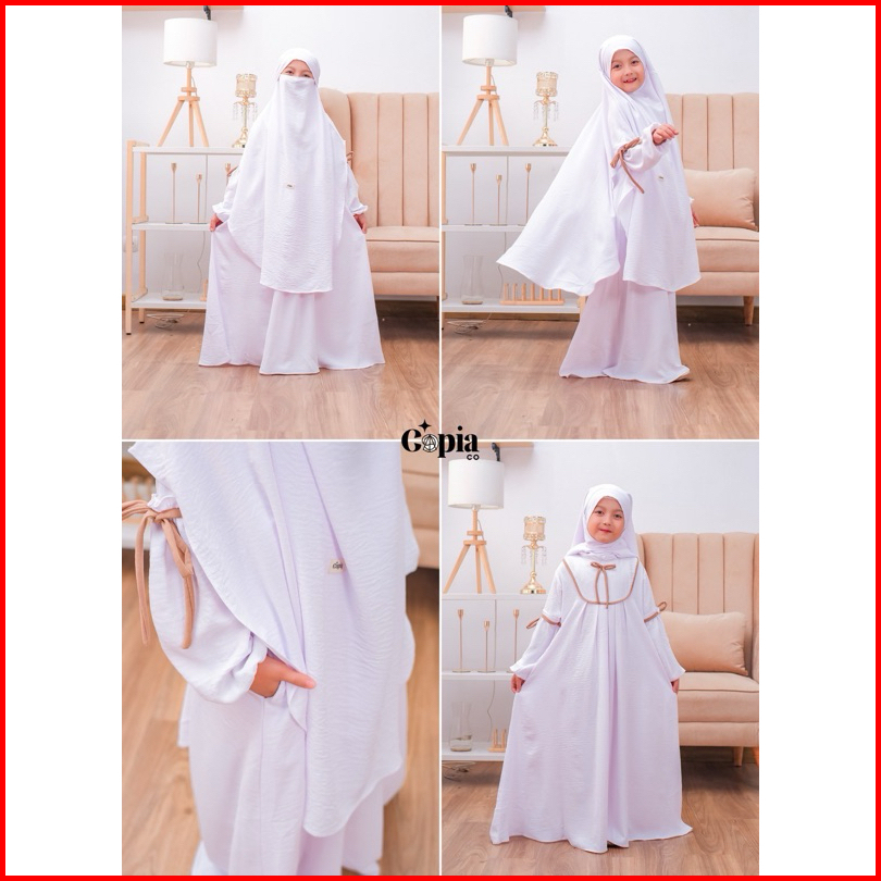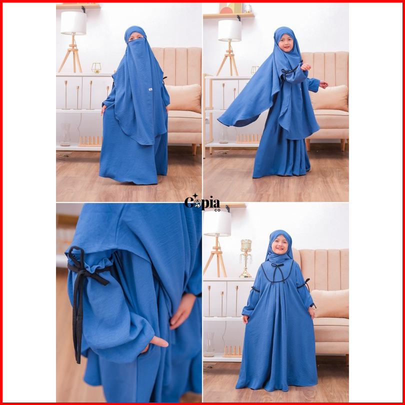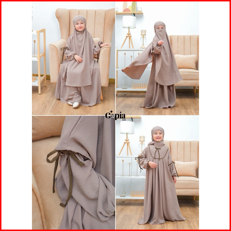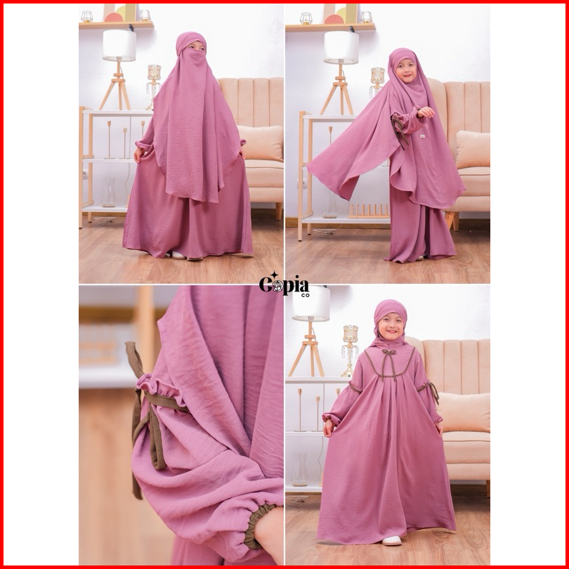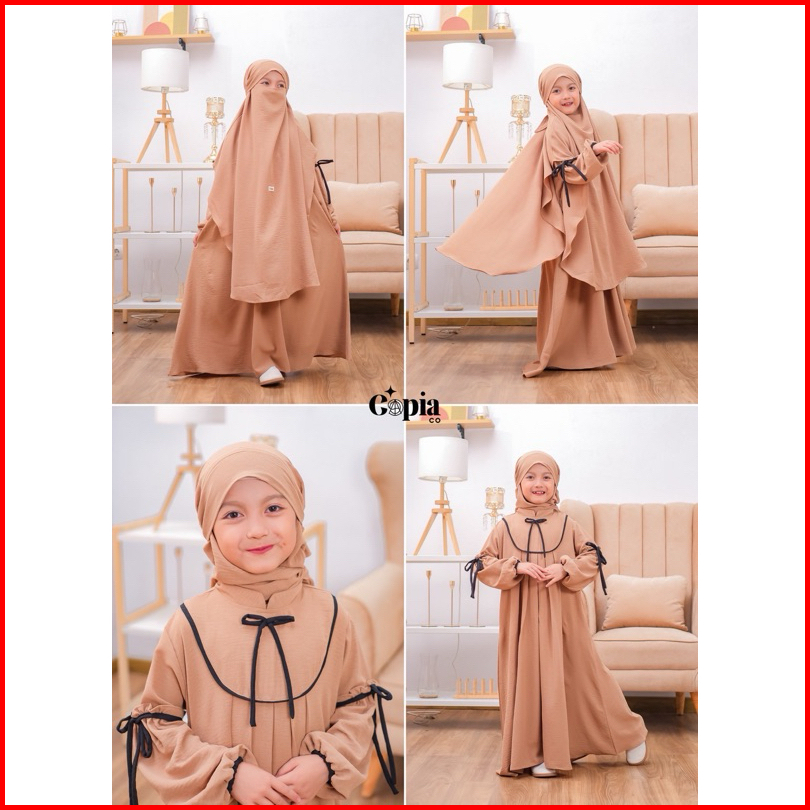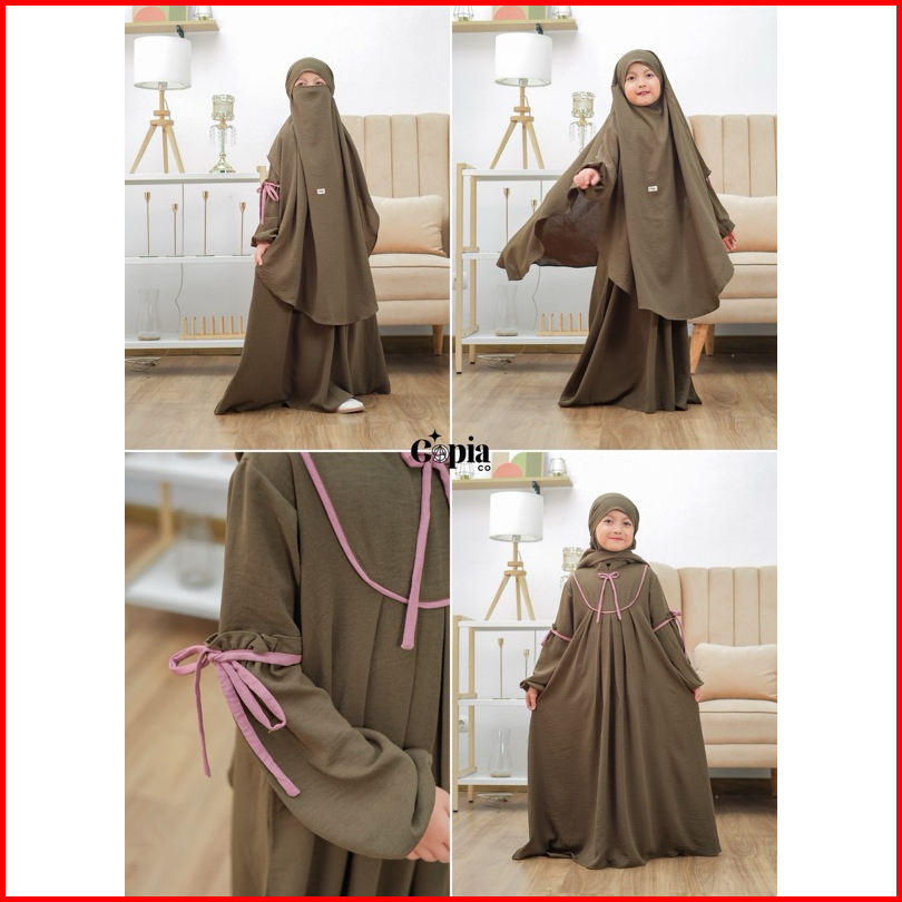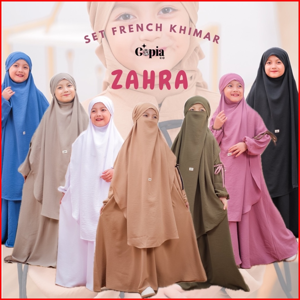 Little Copia - Zahra Gamis Anak Perempuan Set French Khimmar Syari Crinkle Premium Usia 3-13 Thn