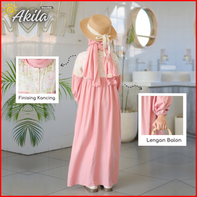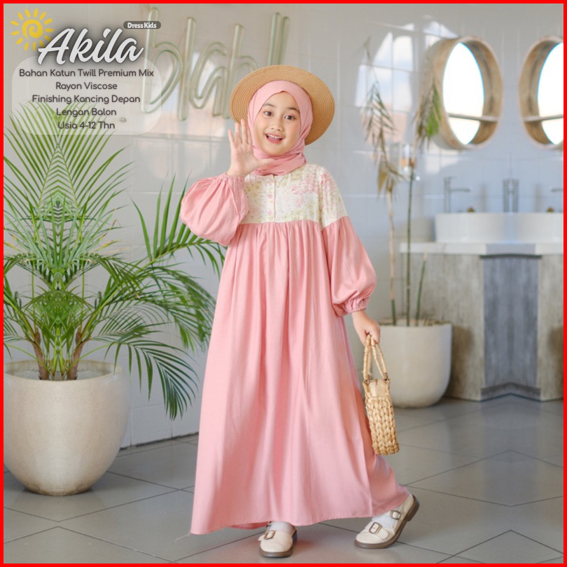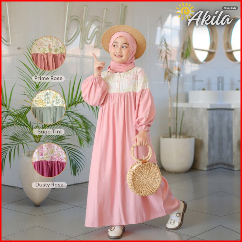 Gamis Anak Perempuan Usia 4 Sd 12 Tahun - Dress Anak Akila Series By Shafea The Label - Long Dress Anak Kombinasi Rayon