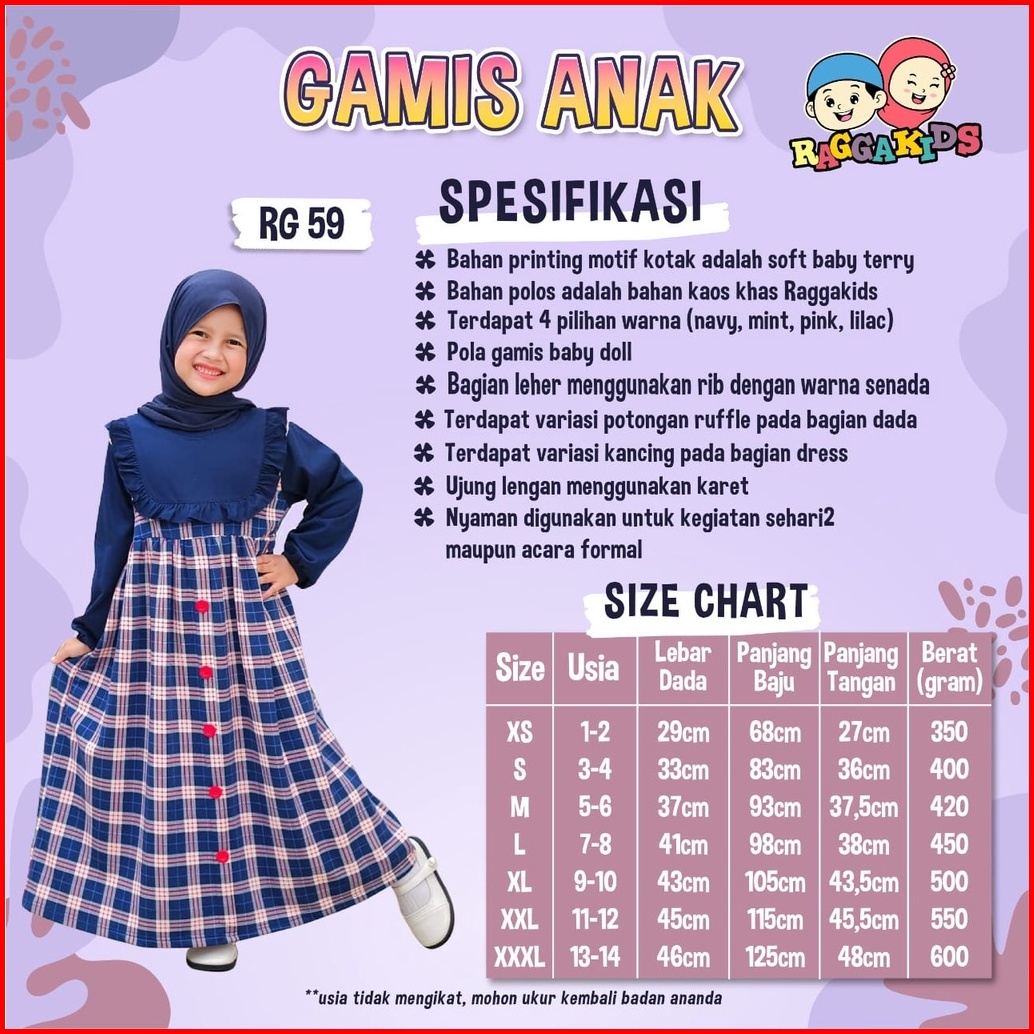 Baju Gamis Long Dress Gamis Muslimah Anak Daily Model Cargo 0-14 Tahun Rg 59 Raggakids