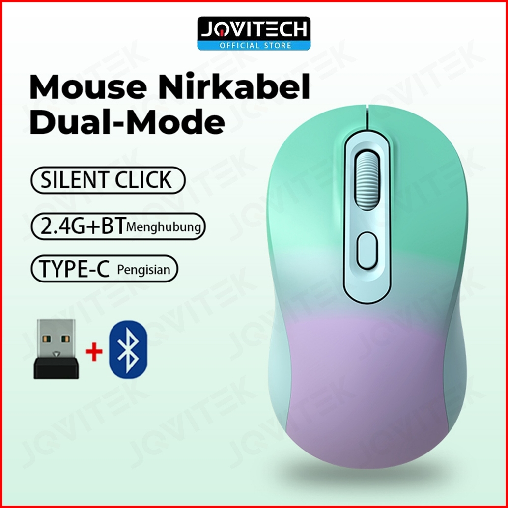 Jovitech Dual Mode Colorful Wireless Mouse Silent Click Bluetooth Usb Receiver Optical Rechargeable 2.4g Type-c Support