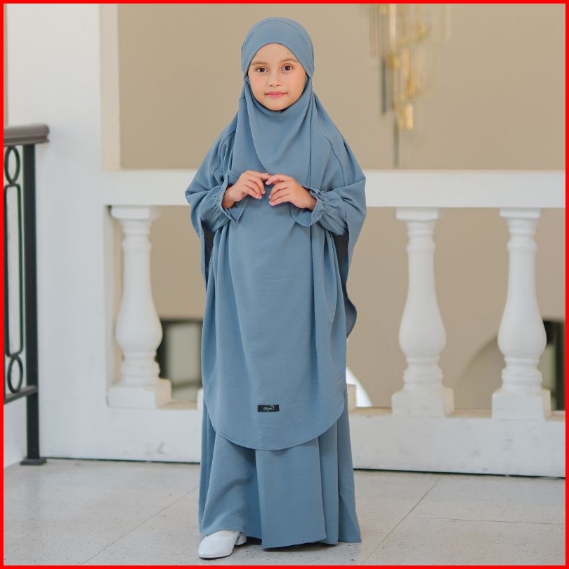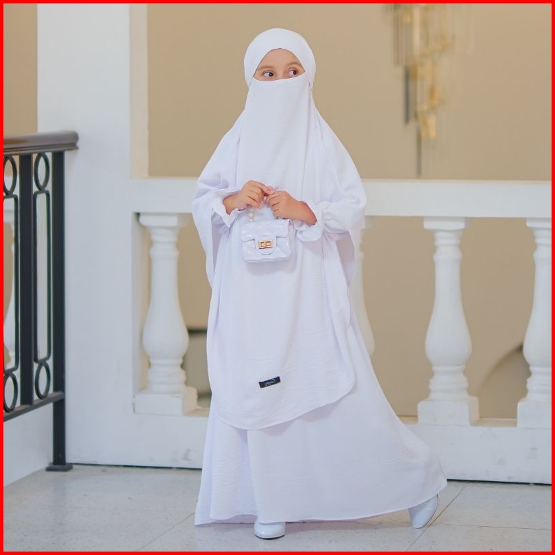 Annakids - Gamis Anak Perempuan French Khimar Nabila Set Hijab Usia 3-12 Tahun