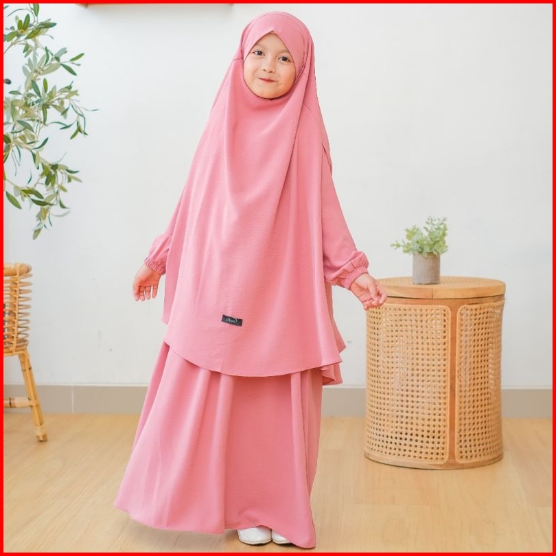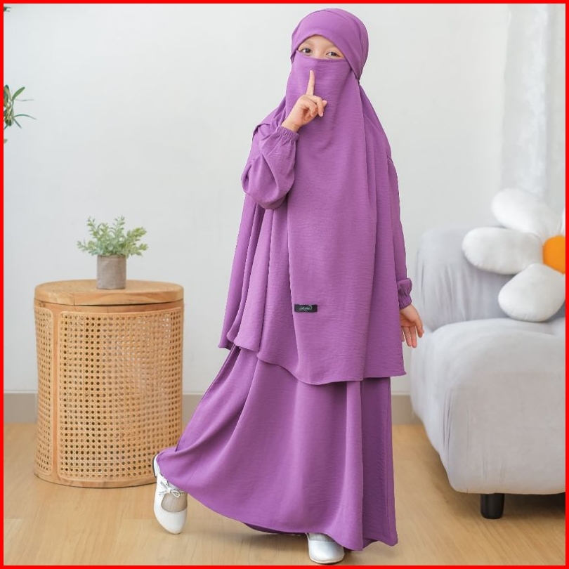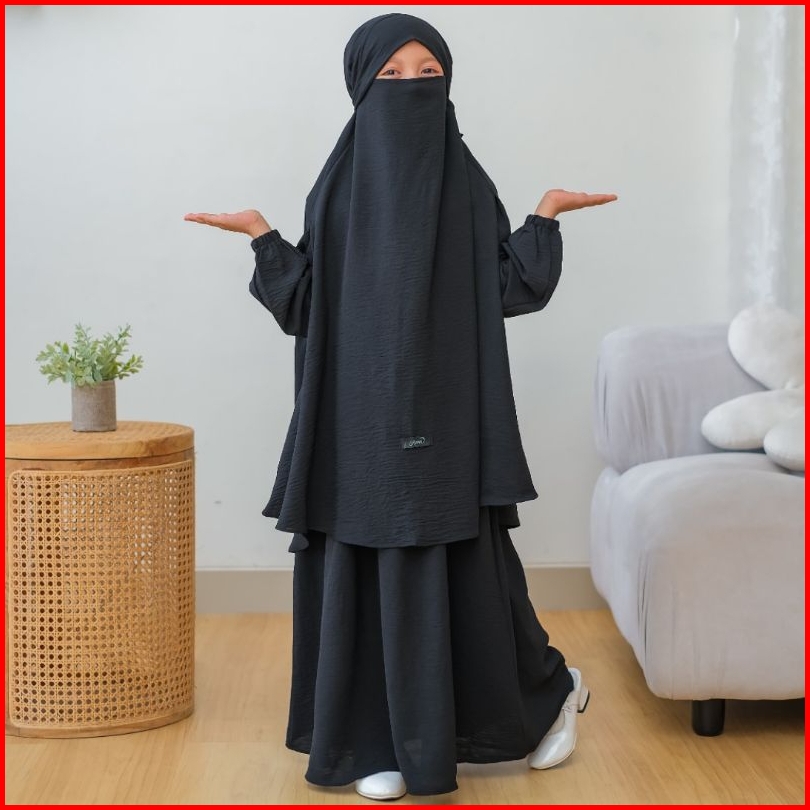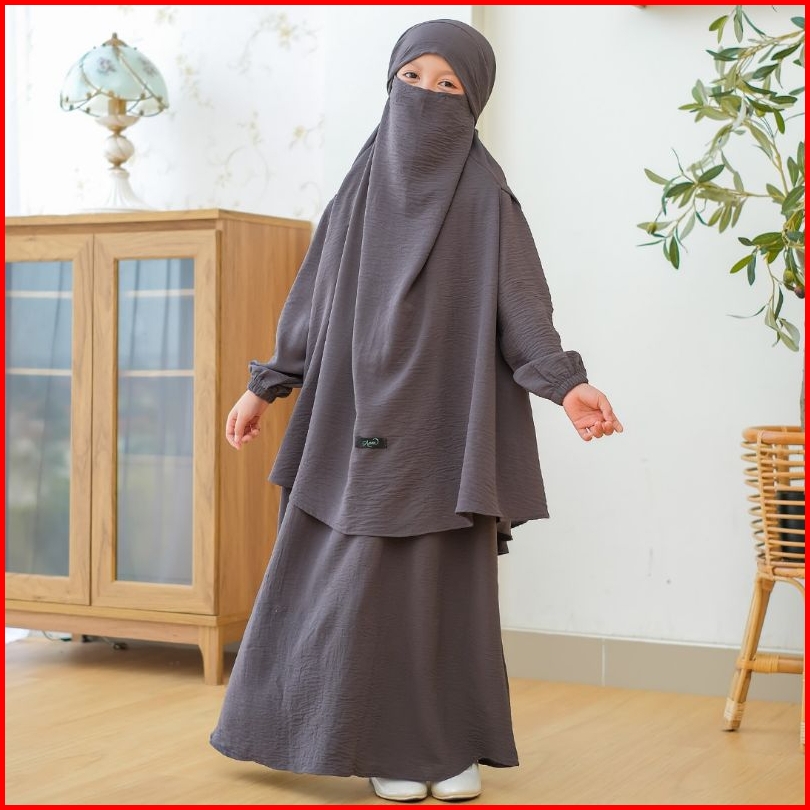 Annakids - Gamis Abaya Anak Perempuan French Khimar Nada Set Cadar Usia 3-12 Tahun