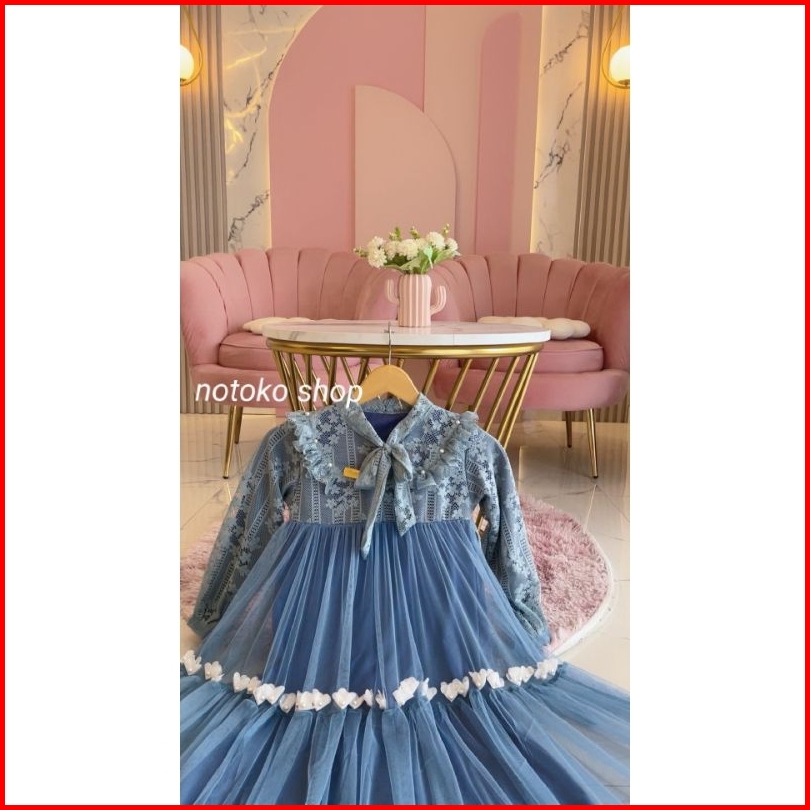 Gamis Pesta Anak Perempuan Larisa Dress Bahan Brukat Mix Tille Usia 3 - 15 Tahun Terbaru 2024