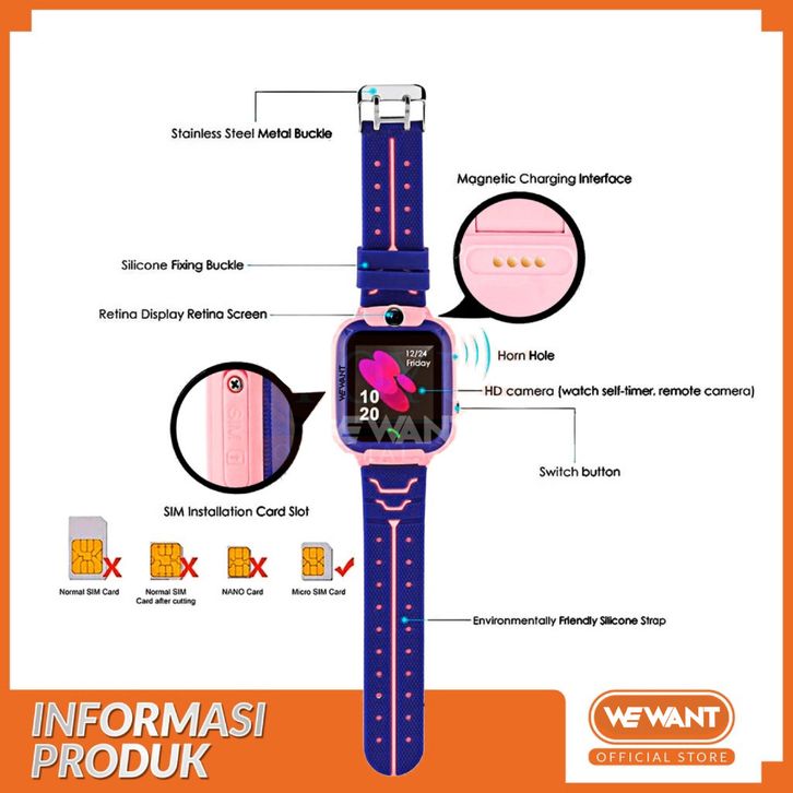 WEWANT Kids Smartwatch GPS IP67 Waterproof Emergency Call JAM TANGAN DIGITAL SMARTWATCH