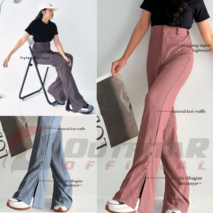 Celana Kulot Wanita Knit Rib Panjang Knit Loose Pants High Waist Kulot Panjang Basic Celana Knit Waffle Kualitas Premium