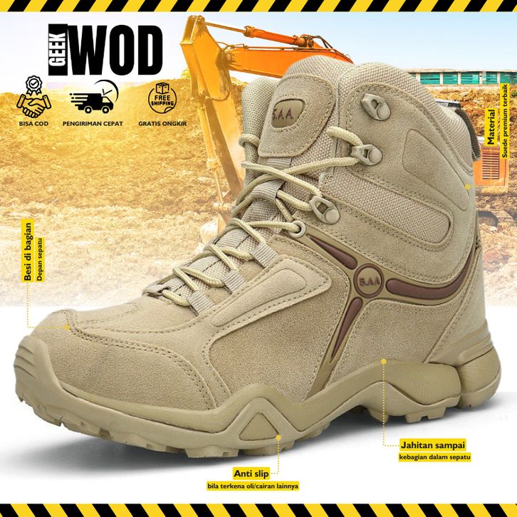 promo murah Sepatu Boots Safety Pria DLT Cordura 5AA Sepatu Tactical Gurun Boot Bikers Ujung Besi Sepatu GAANung Pria O