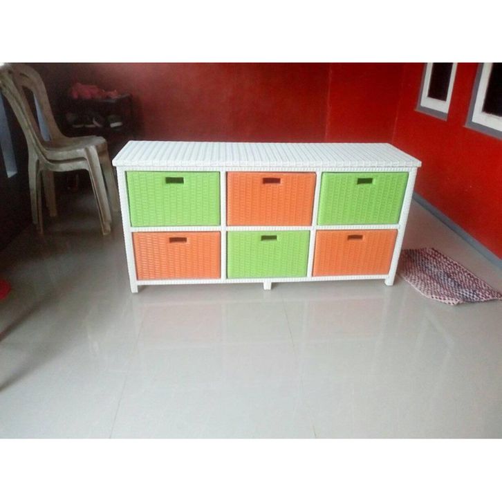 Laci Rotan Meja TV Laci rottan Rak TV Lemari TV Rak Lemari Laci 6 Kotak Rotan Sintetis High Quality Best Seller