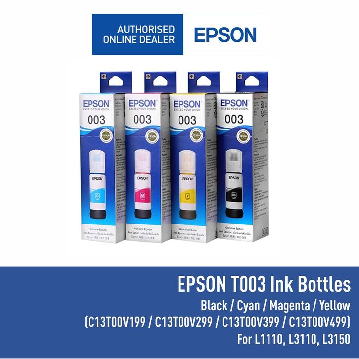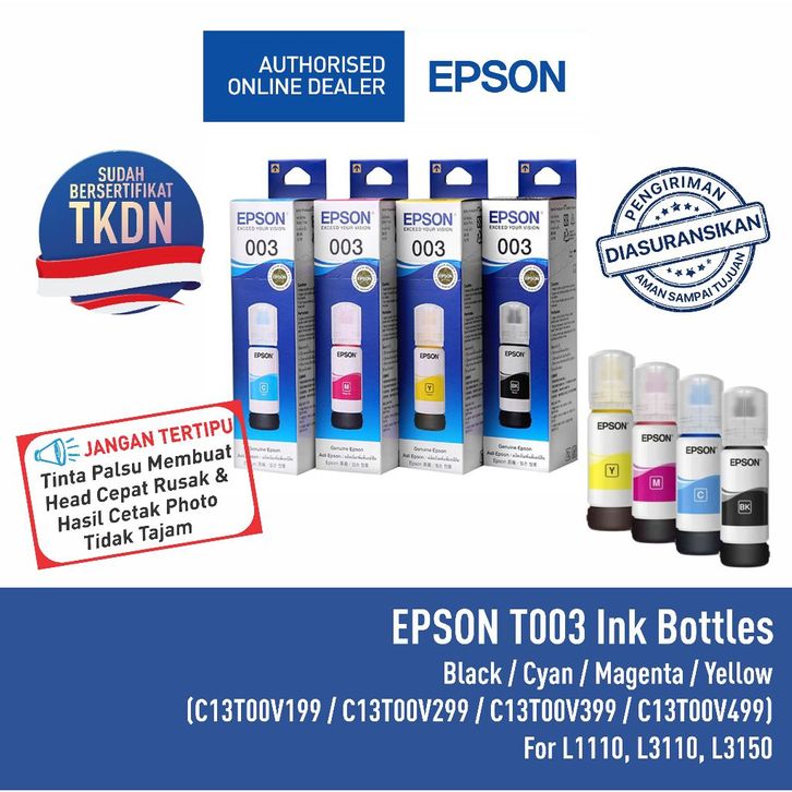Tinta Botol Epson 003 T003 T-003 L1110 L1210 L1250 L3110 L3210 L3150 L3250 L5190 L5290 L11050 1 SET CYMK ORIGINAL