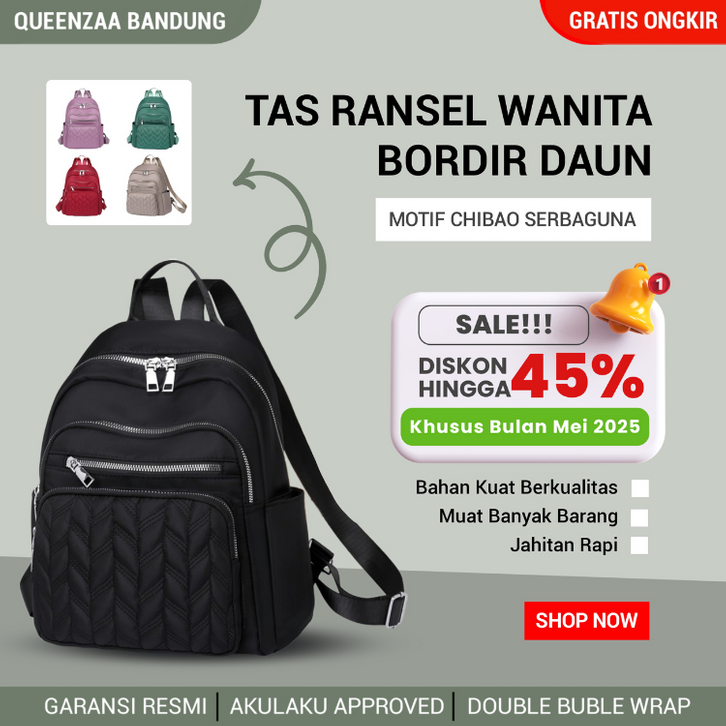 Tas Ransel Wanita Motif Chibao Bordir Daun Backpack Laptop Cocok untuk Kerja Kuliah Sekolah Tas Ransel Muat Banyak