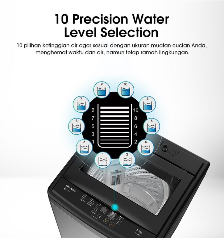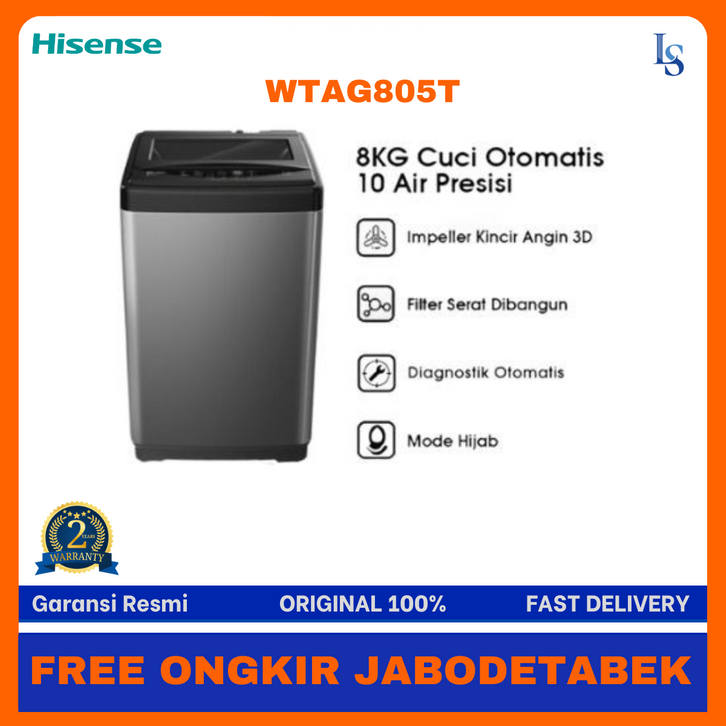 FREE ONGKIR JABDETABEK - Hisense Mesin Cuci 1 Tabung Top Loading 8 KG Washing Machine WTAG805T