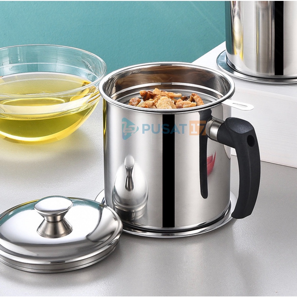 OIL POT FILTER 1300ML SARINGAN STAINLESS WADAH JELANTAH TEMPAT MINYAK SARINGAN