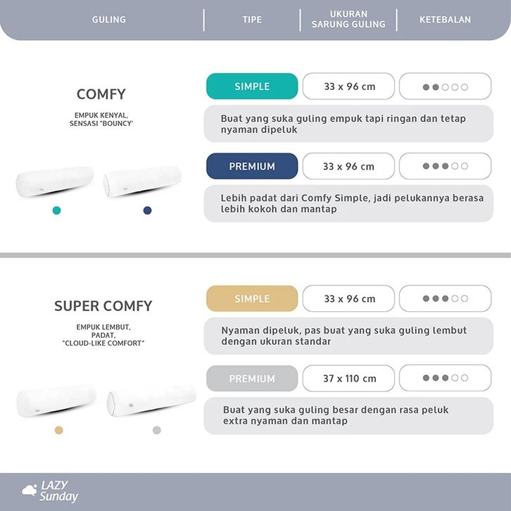 Paket 1 Bantal + 1 Guling Tidur LAZY Sunday , BEST DEAL !! Top Quality !!
