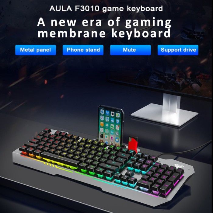 Keyboard Gaming Membrane AULA F-3010 Rubber Dump-NEW R LED +Software