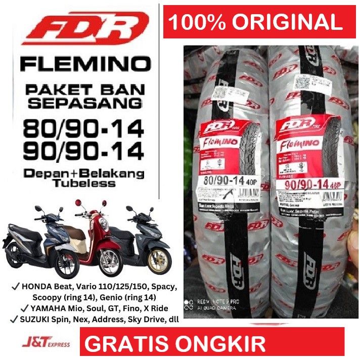 GRATIS 2 PENTIL ! PAKET 80/90 & 90/90 RING 14 FDR FLEMINO SEPASANG / Ban Tubles Motor Matic Beat Vario Mio Ring 14