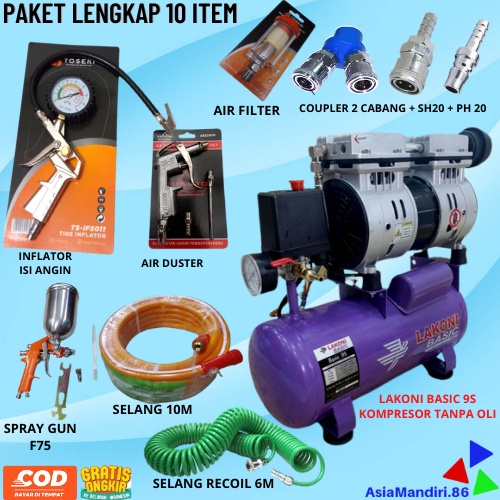 paket kompresor listrik Lakoni imola 75 Oil Silent kompresor angin listrik kompresor listrik mini kompresor listrik