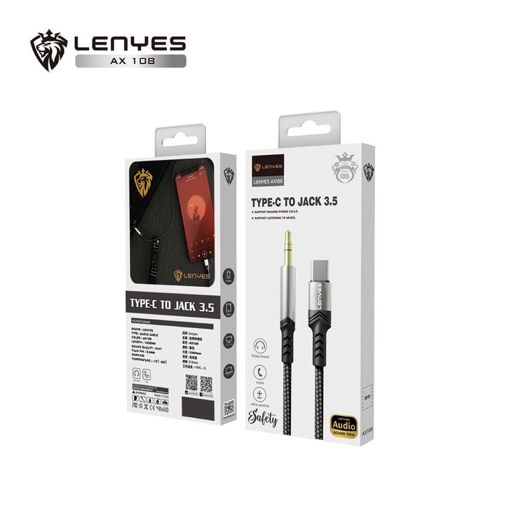 LENYES AX108 Kabel Aux Type C To 3.5mm Jack Audio Cable Converter Nylon 1 Meter