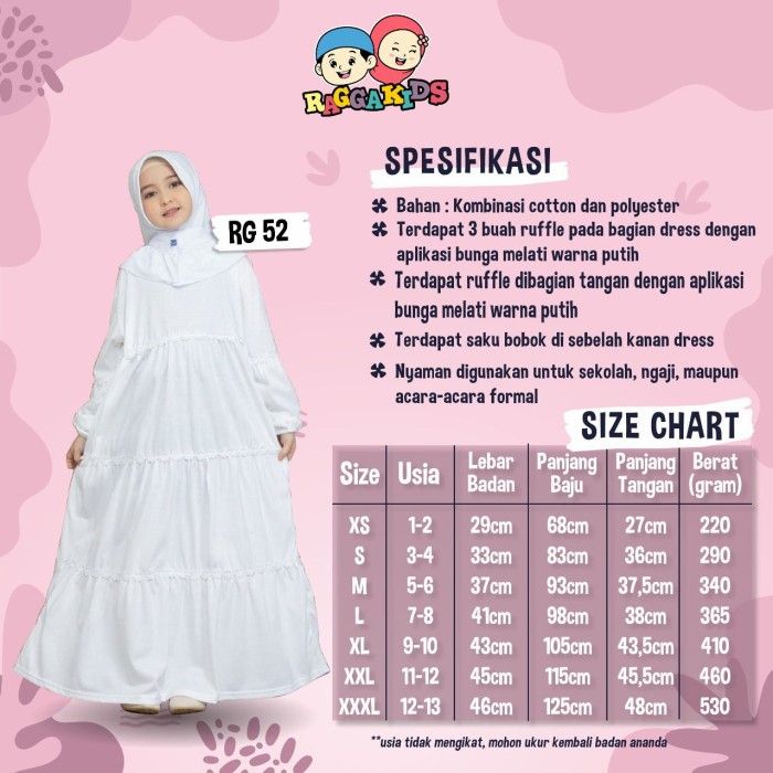 gamis anak perempuan usia 2 12 tahun baju pakaian muslim anak putih 52 -