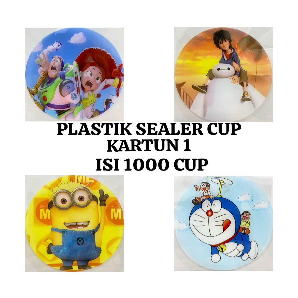 CUP SEALER MINI ISI 1000 CUP MOTIF KARTUN BUAH POLOS TEH DRINK TERMURAH