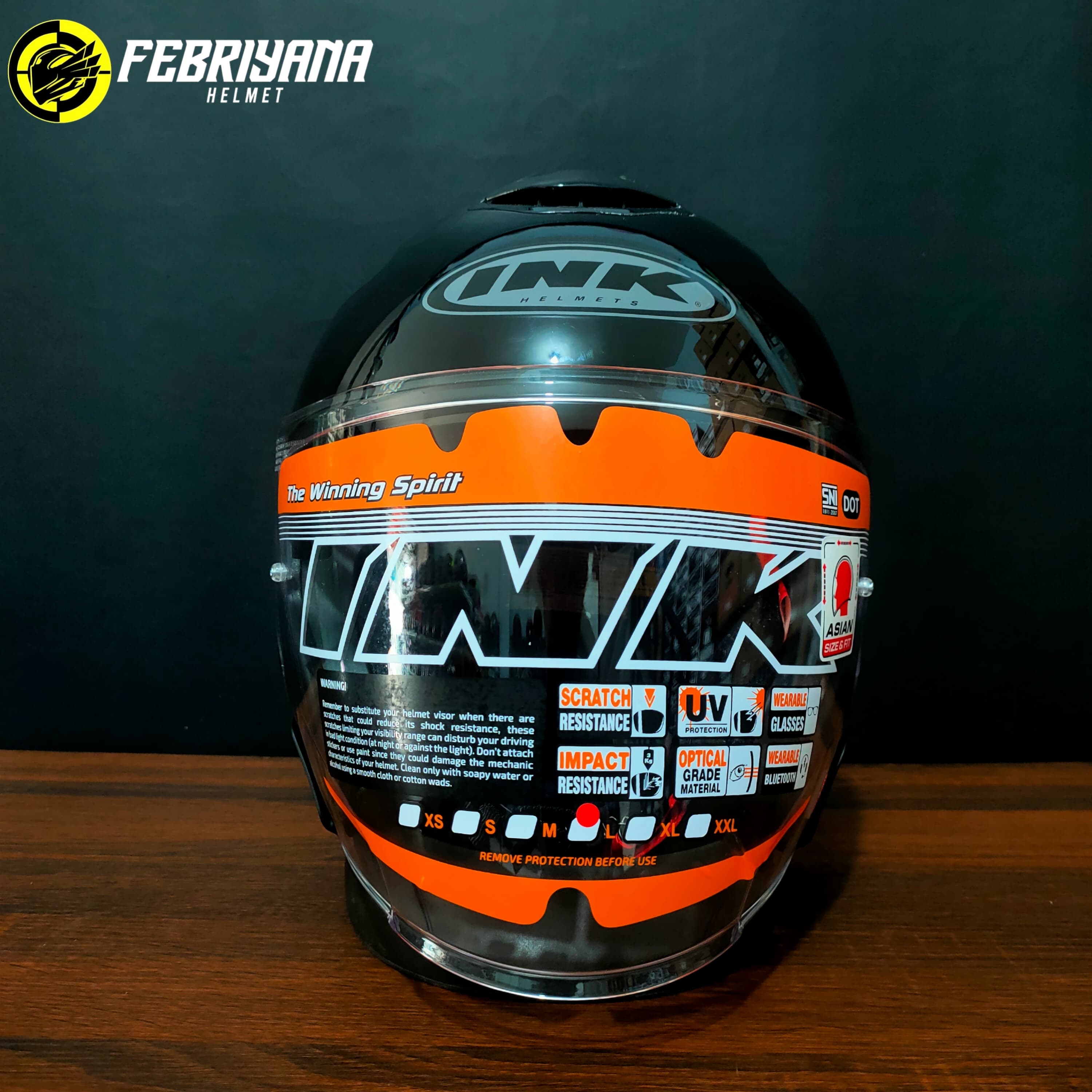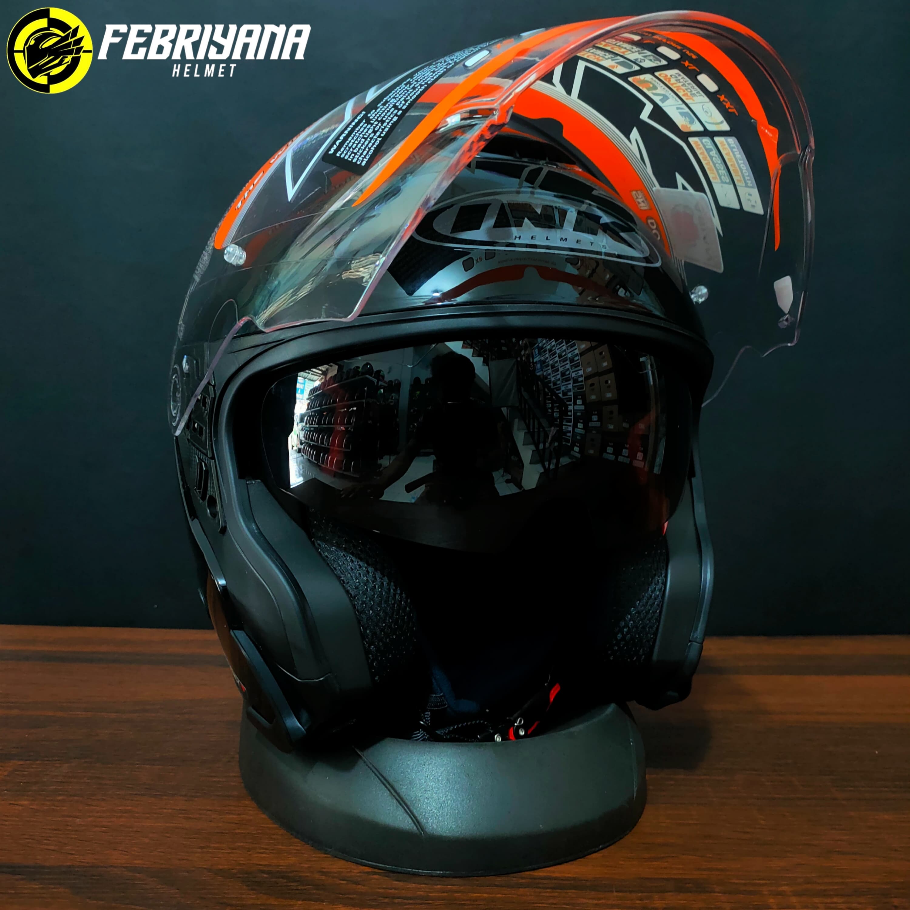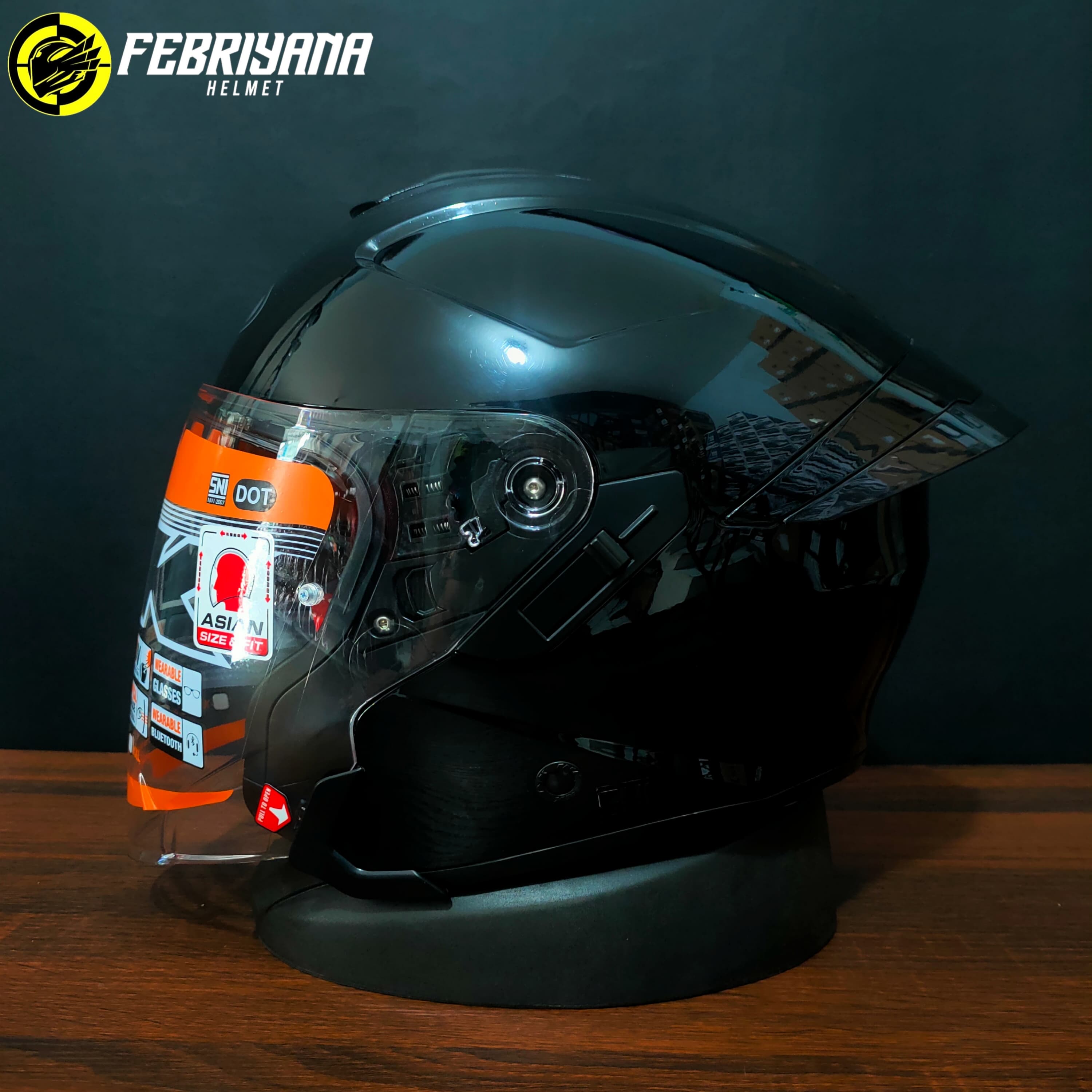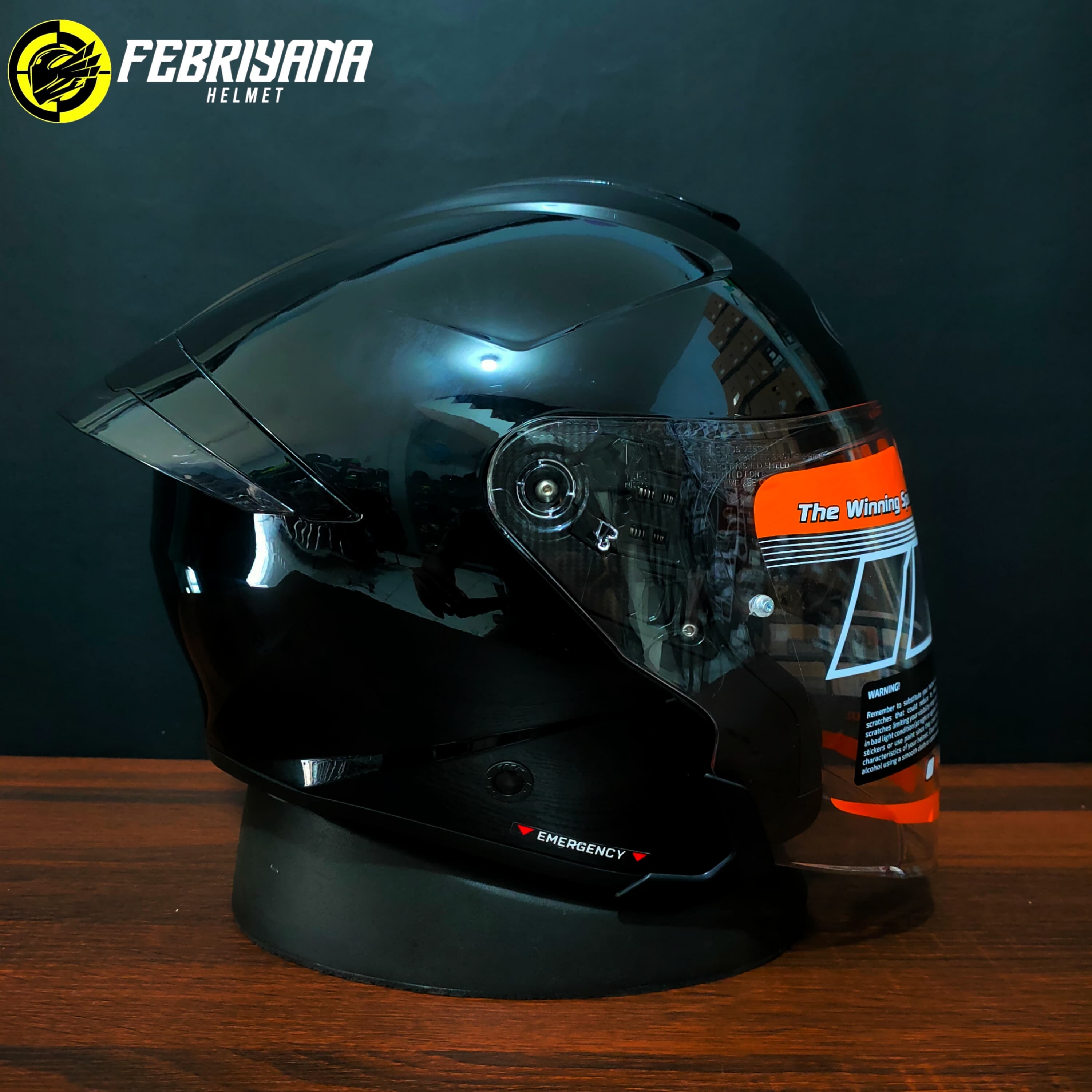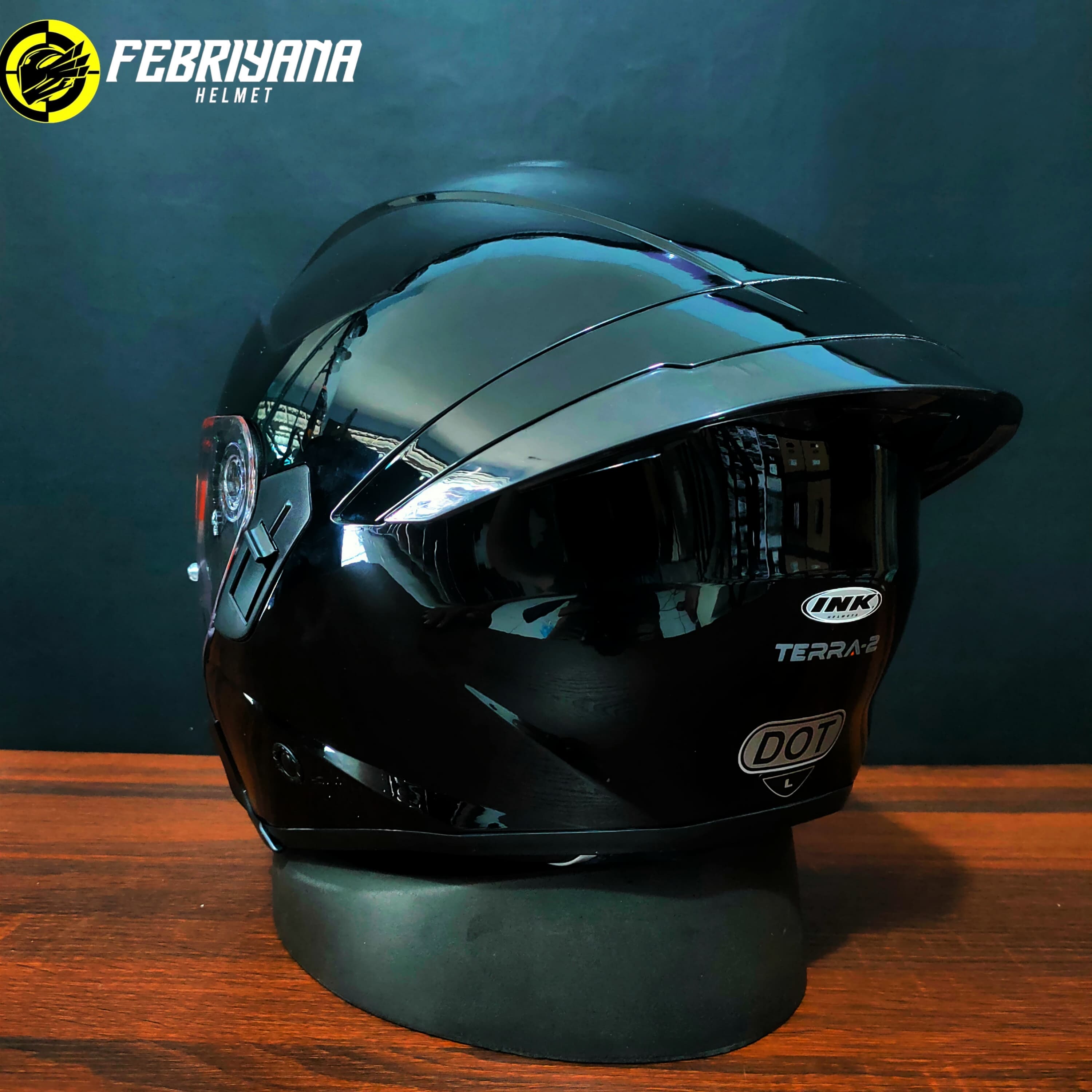 HELM INK TERRA 2 SOLID BLACK GLOSSY||HALF FACE DOUBLE VISOR