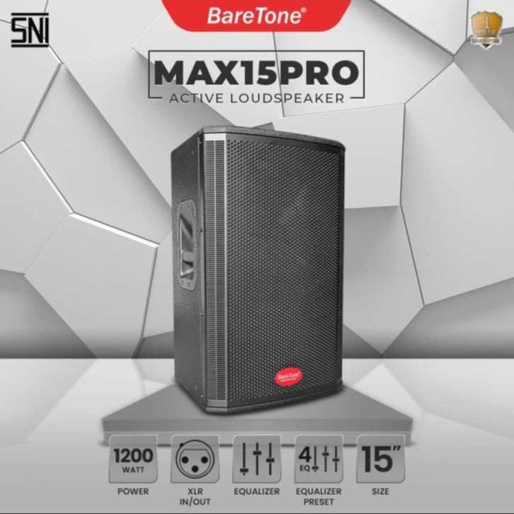 Speaker Aktif 15 Inch BareTone MAX 15PRO MAX15PRO RMS 1.200 Watt Original Garansi Resmi [ Harga 2 Unit ]