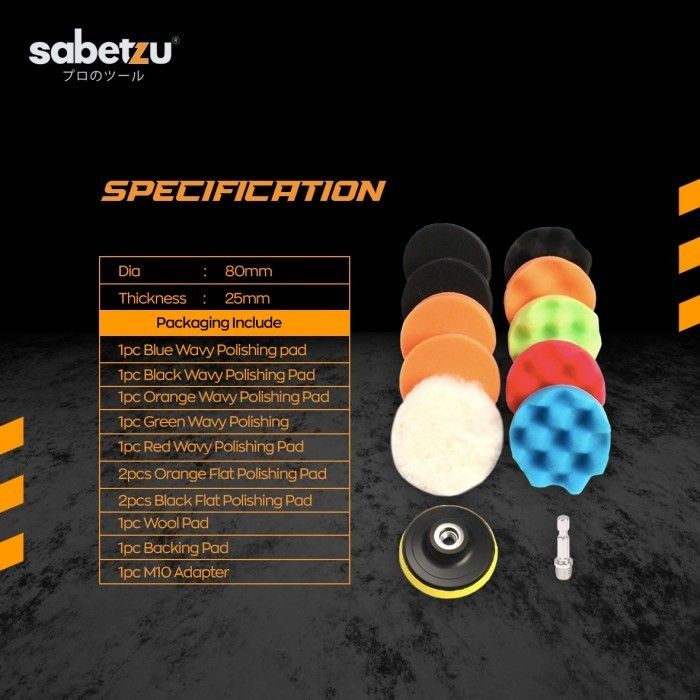 SABETZU Polishing Set 3" Adaptor M10 Set 12pcs Busa Poles Set 12pcs 3 Inch Sponge Polishing Set Spon Pad 3" Polishing Se