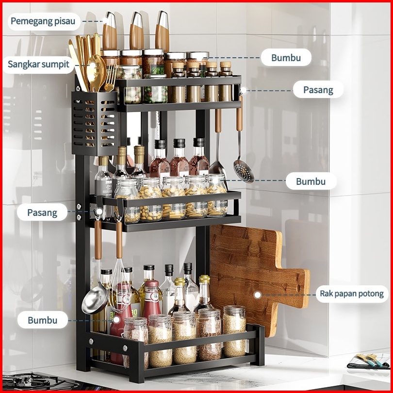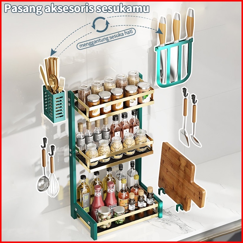 Rak Bumbu Dapur Meja Dapur Multifungsi Rak 2-3tingkat Opsional Dengan Aksesoris