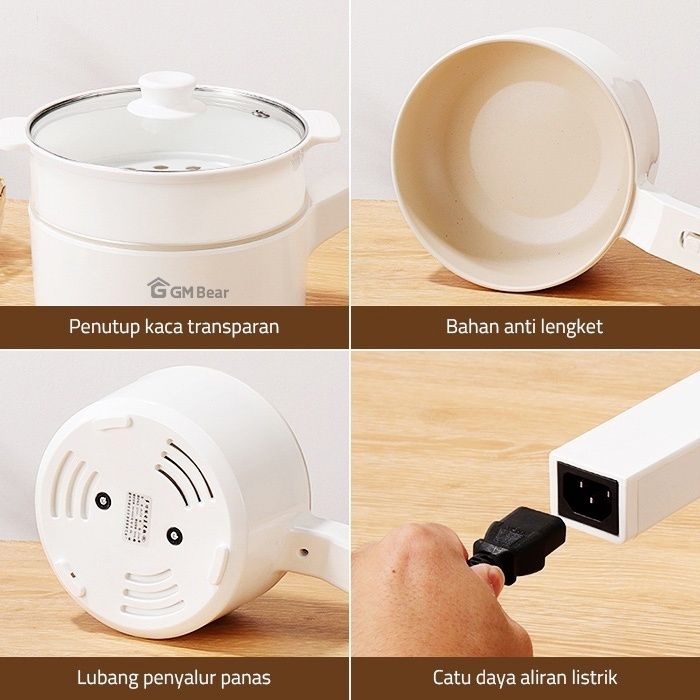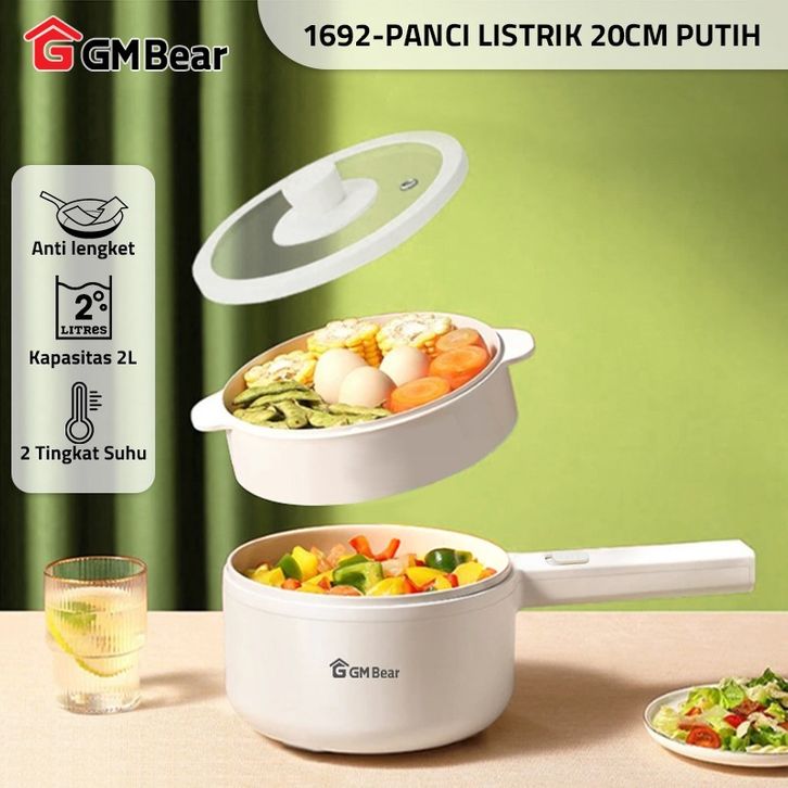 GM Bear Panci Listrik Serbaguna 2L 1692 - Kompor Listrik Pintar/Asrama/Pelajar Penggorengan Elektrik Fr3e Steamer