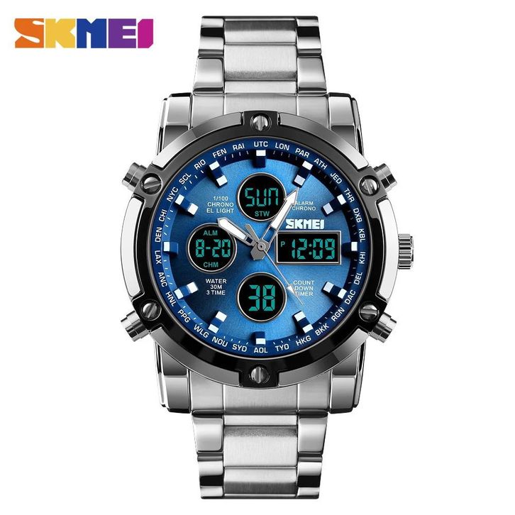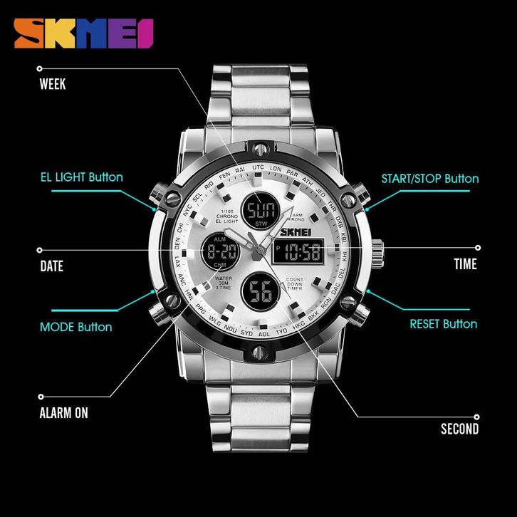 [Mall] JAM TANGAN PRIA | JAM TANGAN SKMEI 1389 DIGITAL ANALOG TALI STENLIS MGOS | JAM TANGAN BISNIS | ELEGANT DAN MEWAH